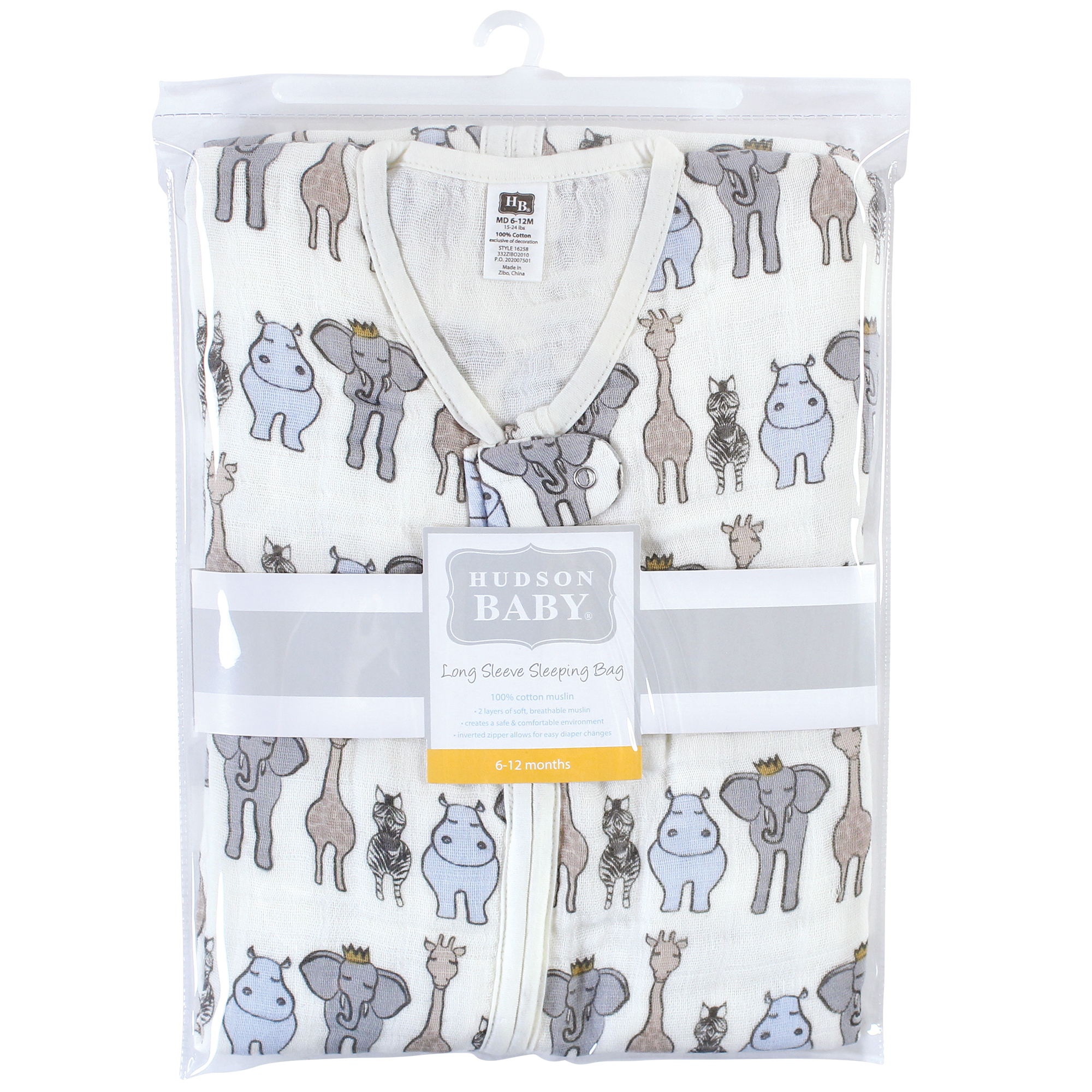 Hudson Baby Long Sleeve Muslin Sleeping Bag, Wearable Blanket, Sleep Sack, Royal Safari