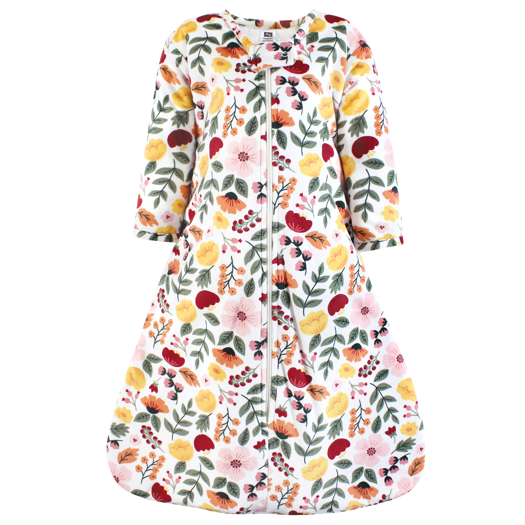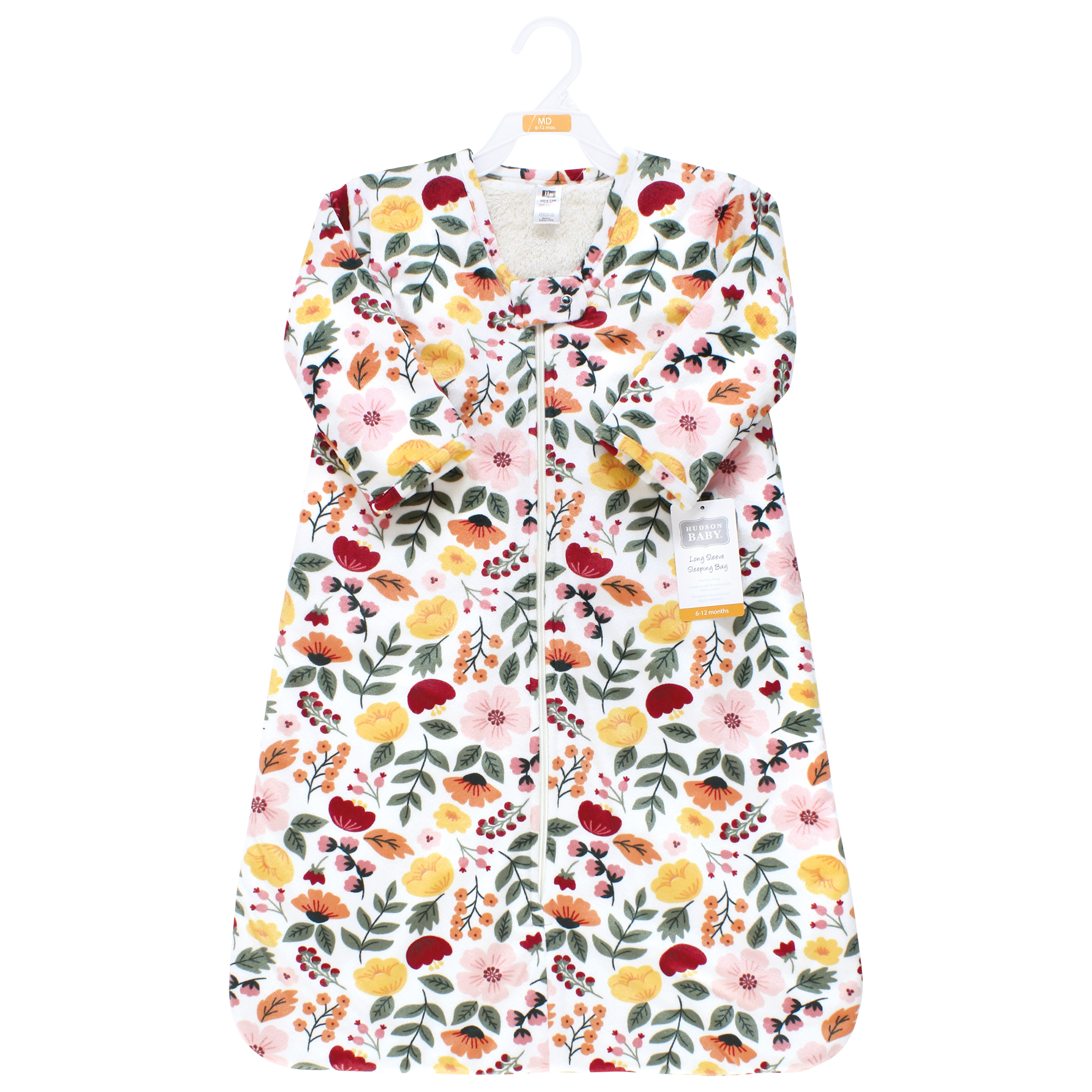 Hudson Baby Long Sleeve Plush Faux Fur Sleeping Bag, Wearable Blanket, Fall Botanical