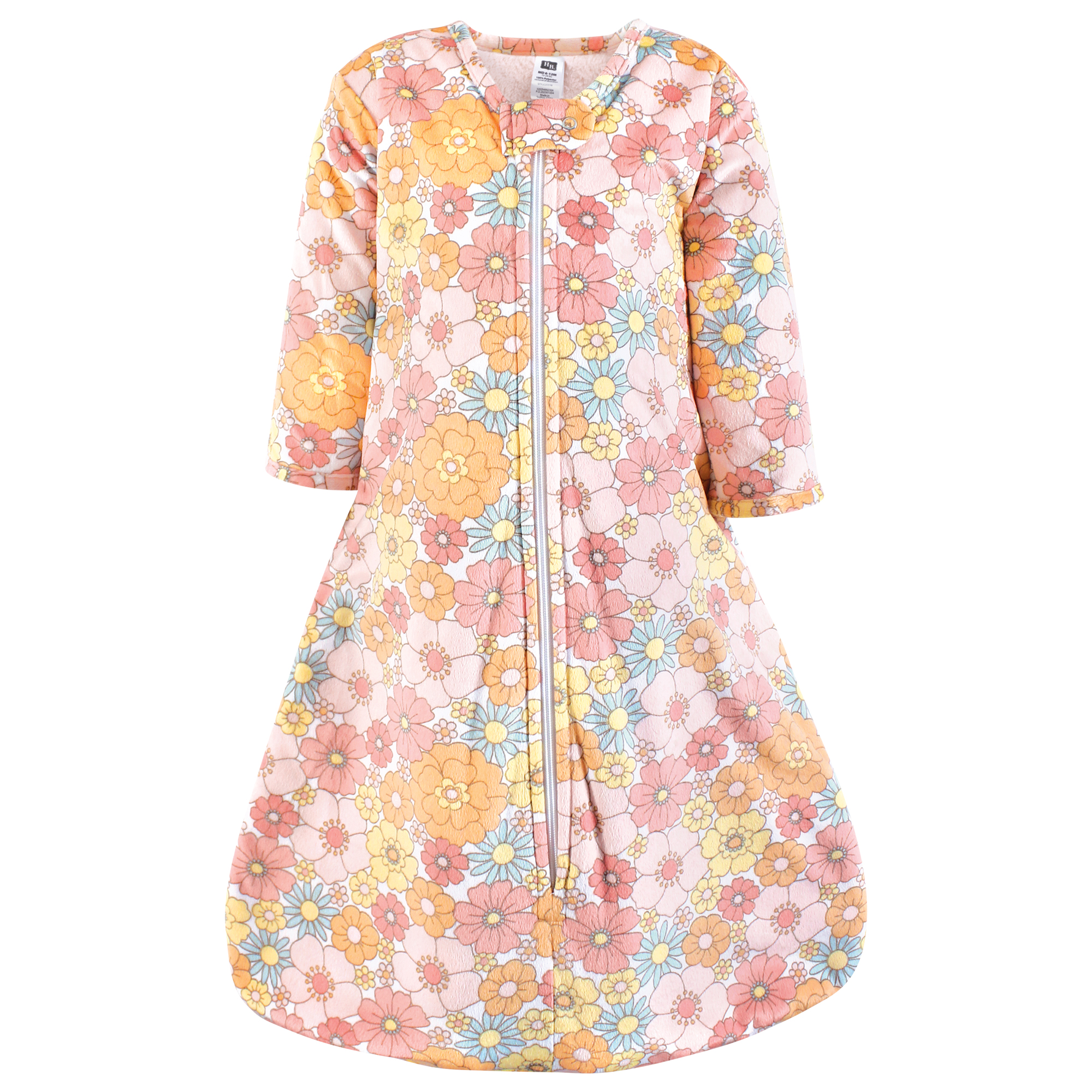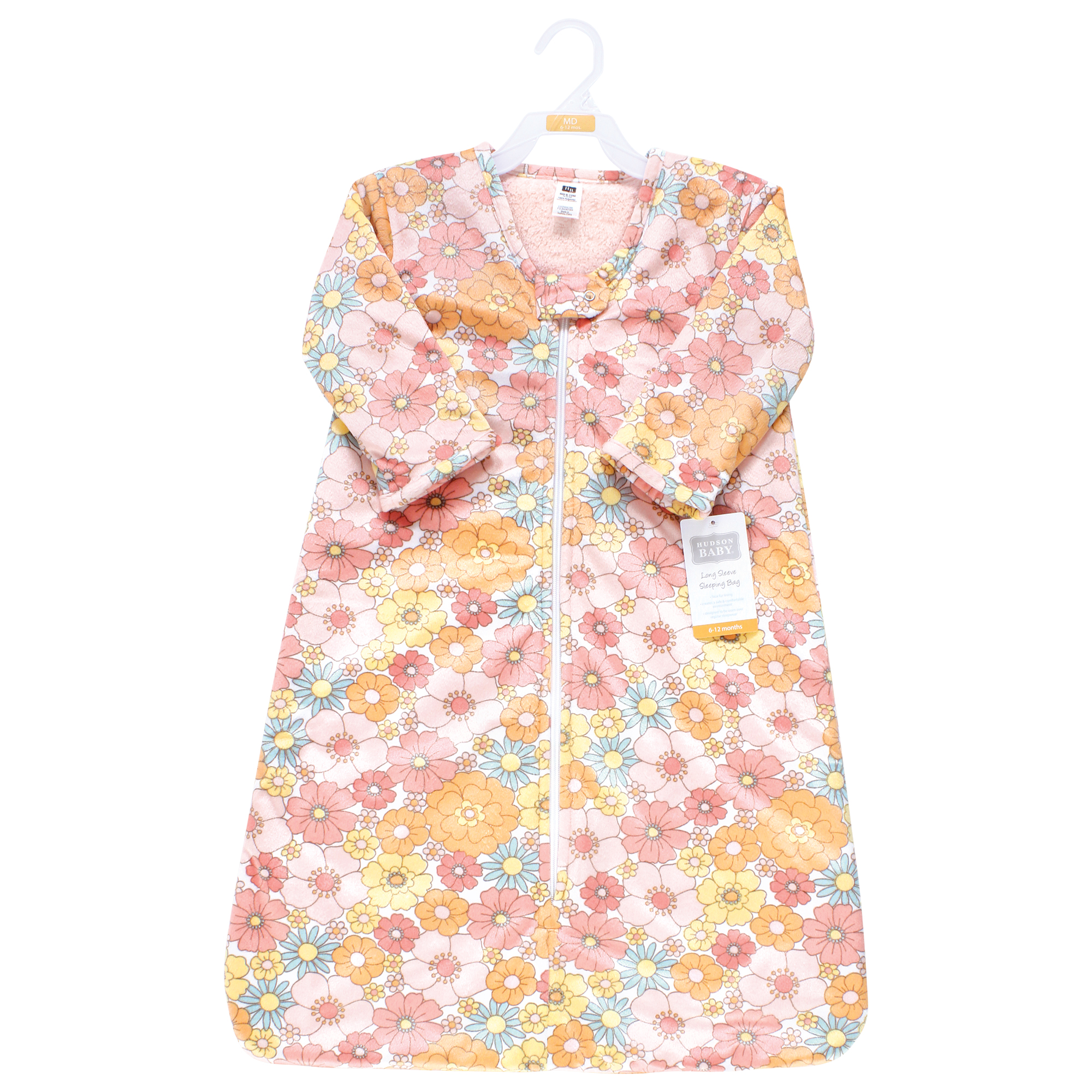 Hudson Baby Long Sleeve Plush Faux Fur Sleeping Bag, Wearable Blanket, Peace Love Flowers