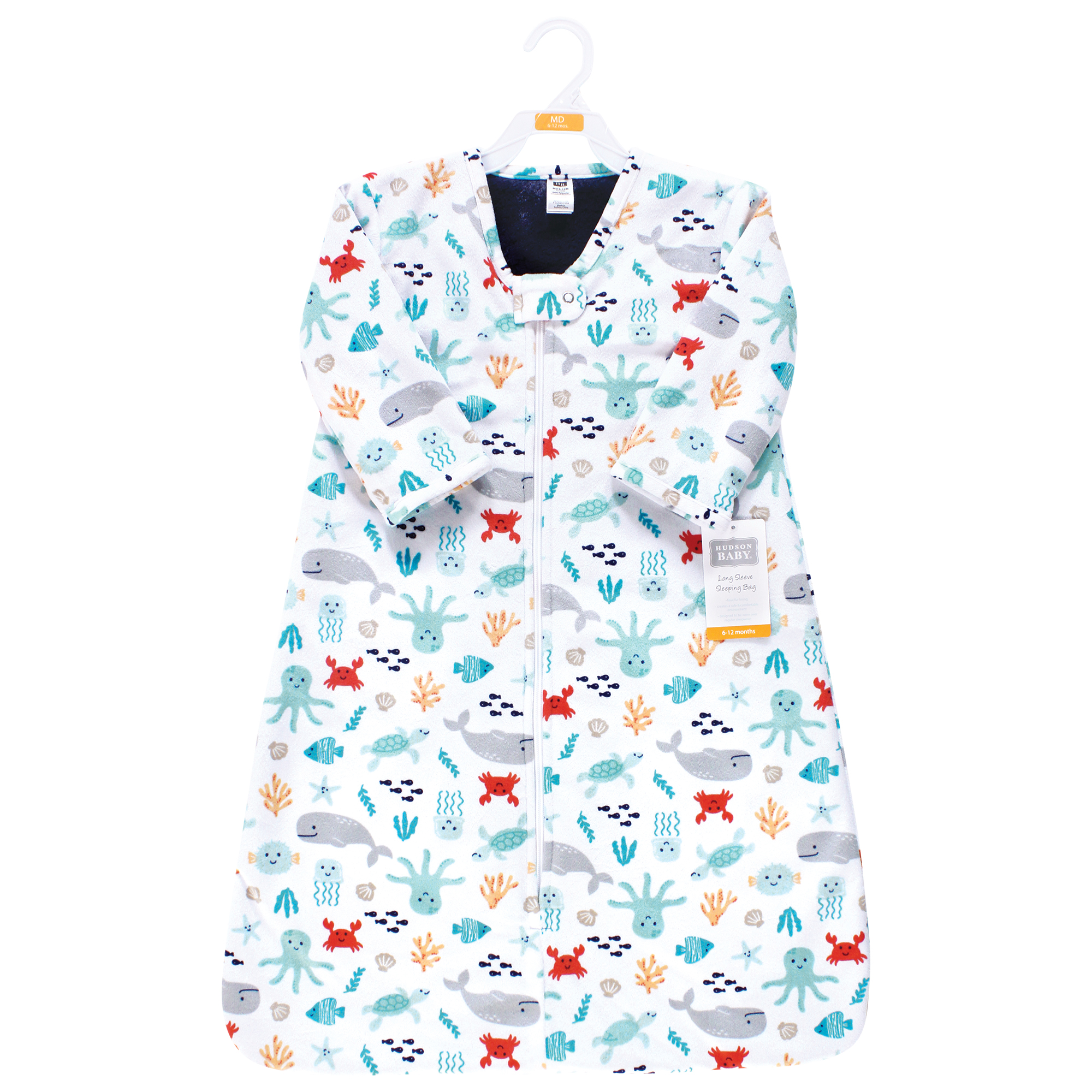 Hudson Baby Long Sleeve Plush Faux Fur Sleeping Bag, Wearable Blanket, Sea Characters