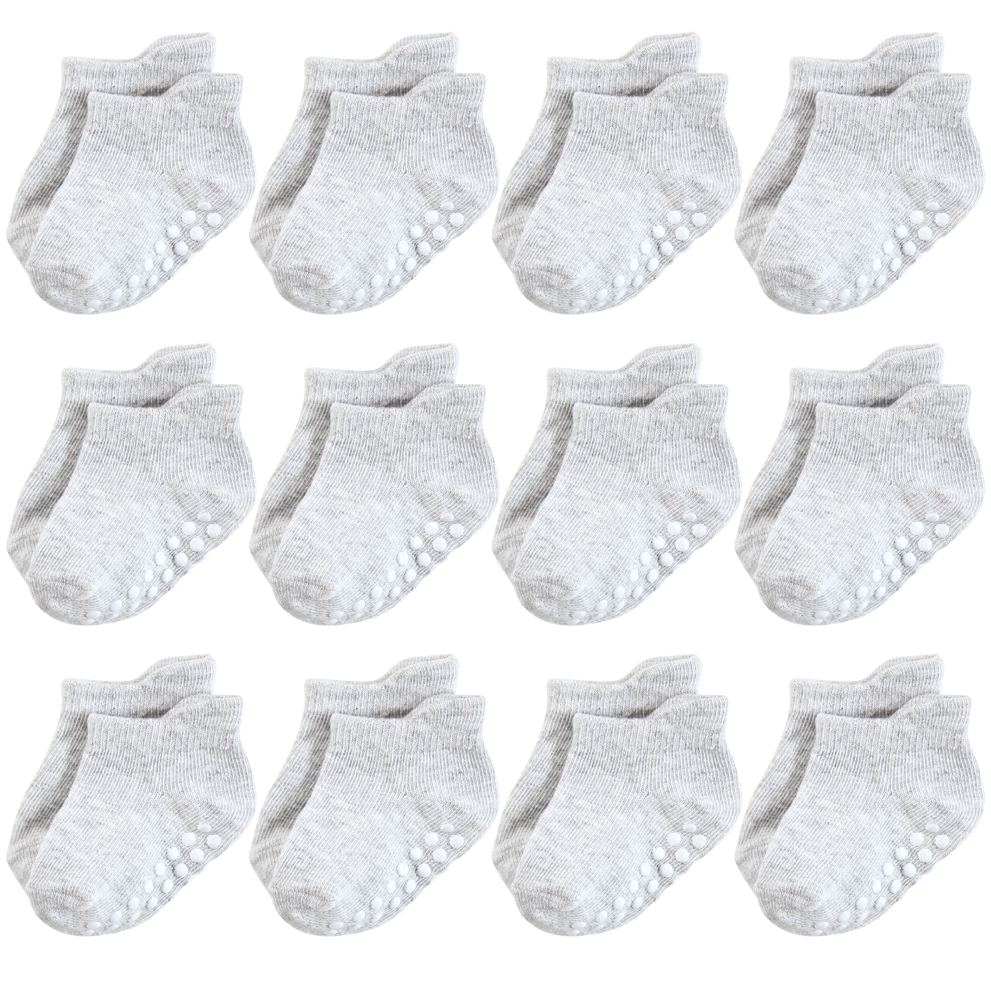 Hudson Baby socks are ideal baby socks for everyday wear with cotton-rich fabric that are soft and comfortable on your baby's tiny little feet. Our stretchable design makes for proper fit and no fuss dressing. Our non-skid grippers are perfect for little ones and toddlers walking and running, helping prevent trips and falls. Made with soft, cushy fabric, our socks are a great addition to your little one's outfit.