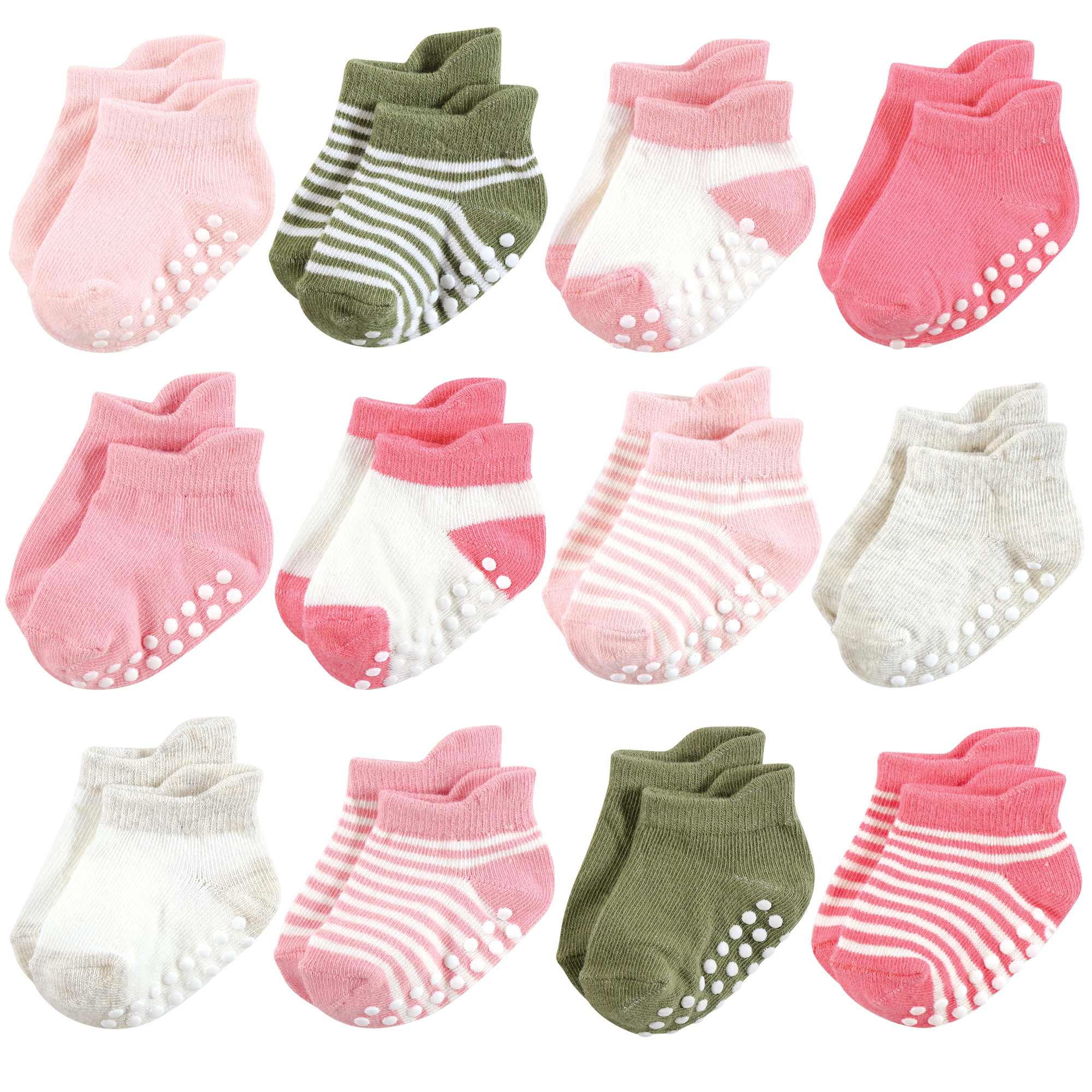 Hudson Baby Non-Skid No-Show Socks, Pink Green