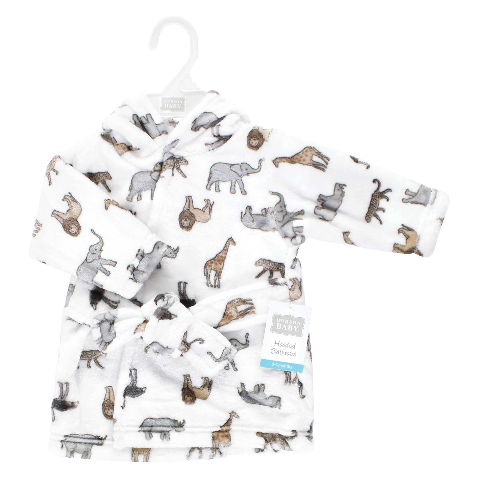 Hudson Baby plush hooded robe is made of super soft, cozy plush material to dry and warm baby after bath or pool time. Our cozy fabric will be the perfect robe to wrap your baby in after post-water activities. Our detailed animal hood designs are sure to make bath time more fun and adventurous.