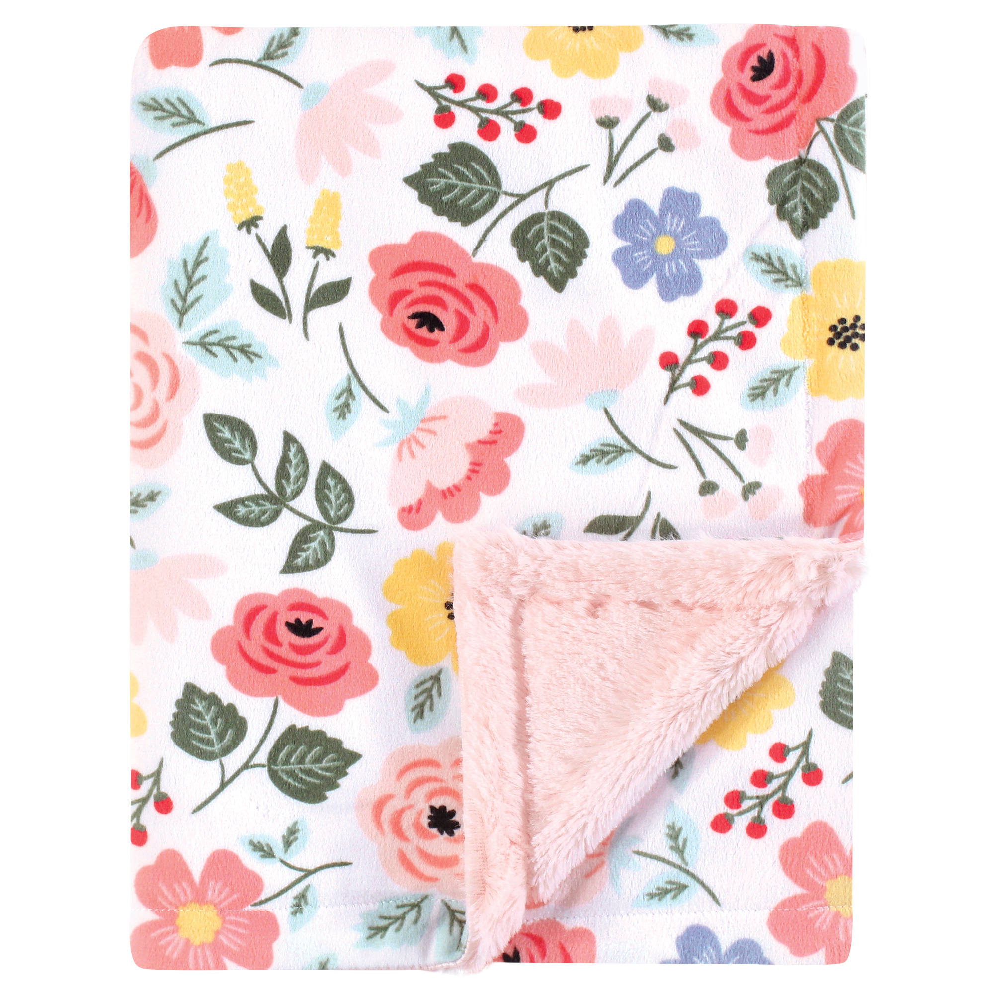 Hudson Baby Plush Blanket with Furry Binding and Back, Modern Botanical
