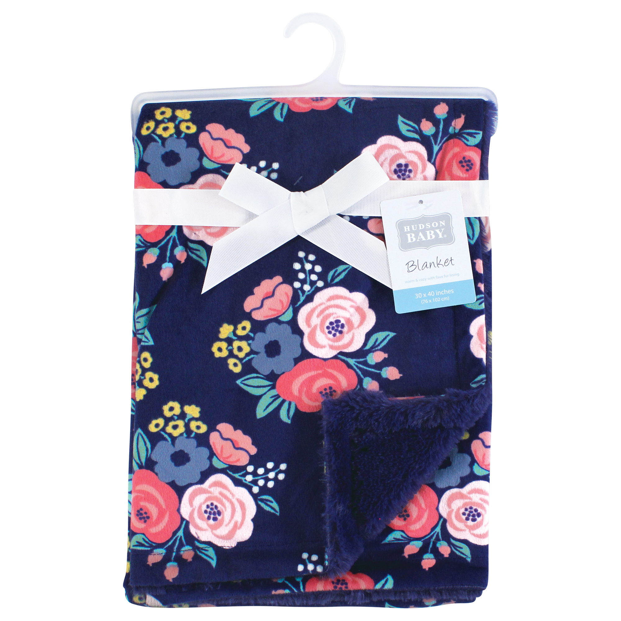 Hudson Baby plush blanket with furry binding is a super soft, warm and cozy baby blanket to add to your little one's nursery. Measuring 30x40 inches, our blanket is soft and gentle on baby's skin and great for everyday use. Our blanket is great for snuggle and sleep, but also as a stroller cover, car seat blanket and more.