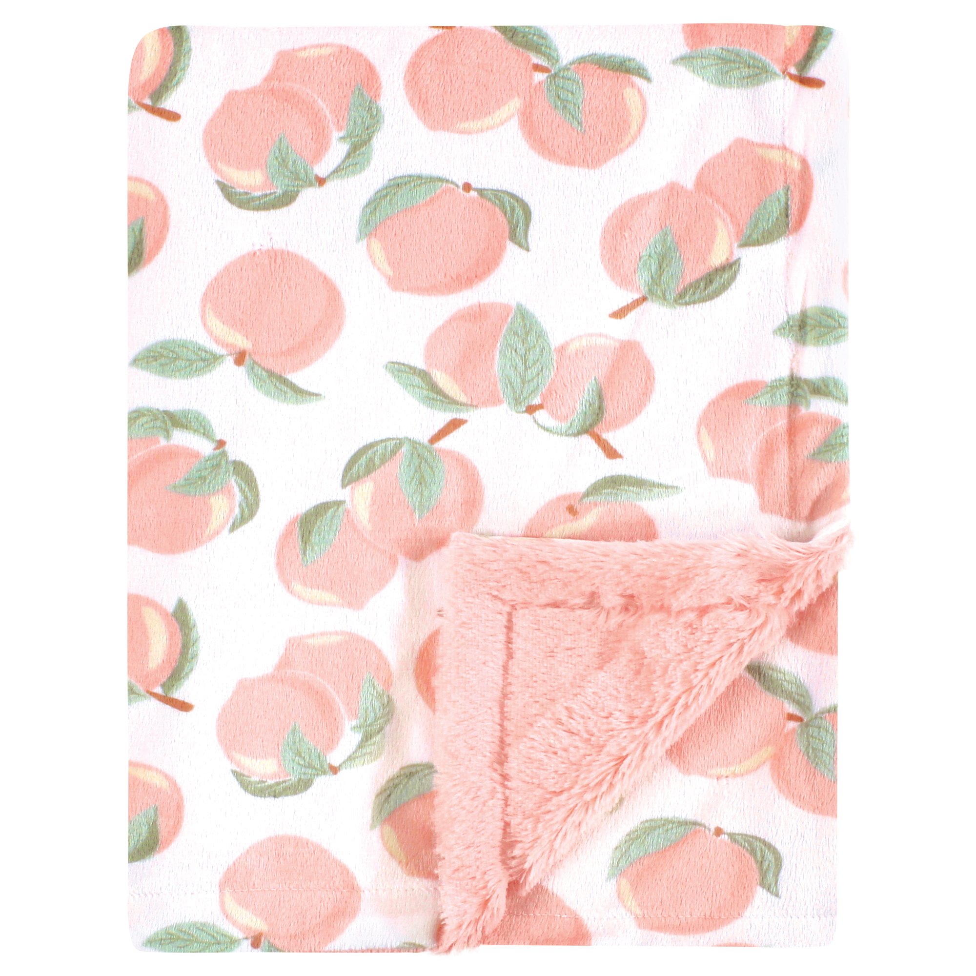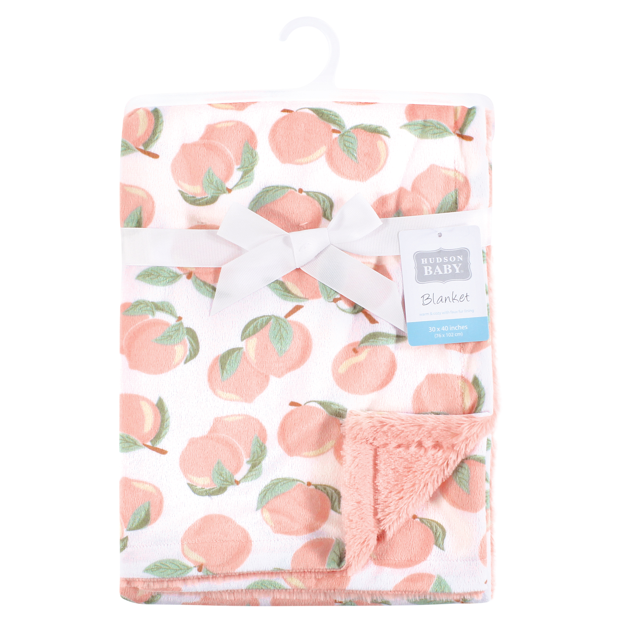 Hudson Baby Plush Blanket with Furry Binding and Back, Peach