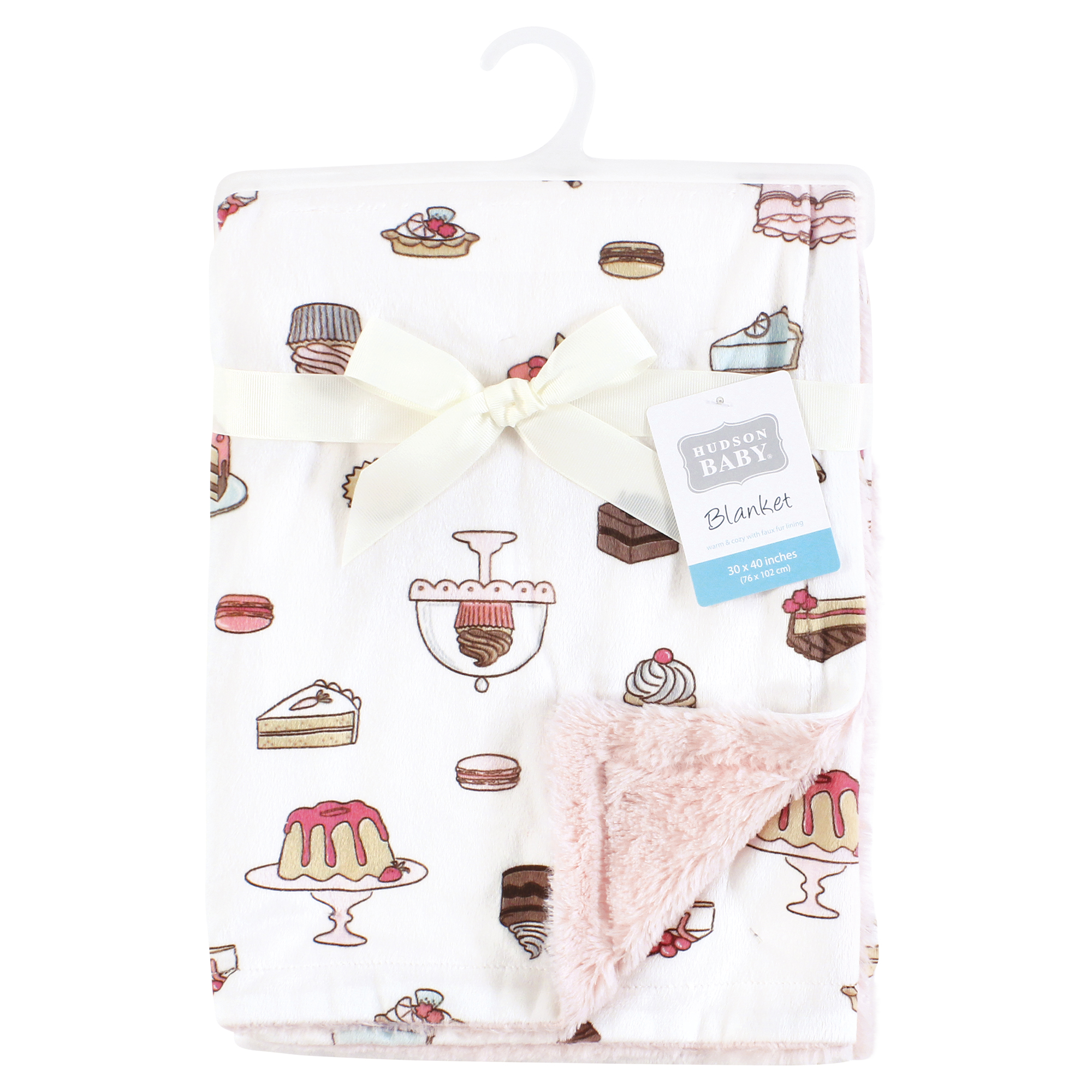 Hudson Baby Plush Blanket with Furry Binding and Back, Sweet Bakery
