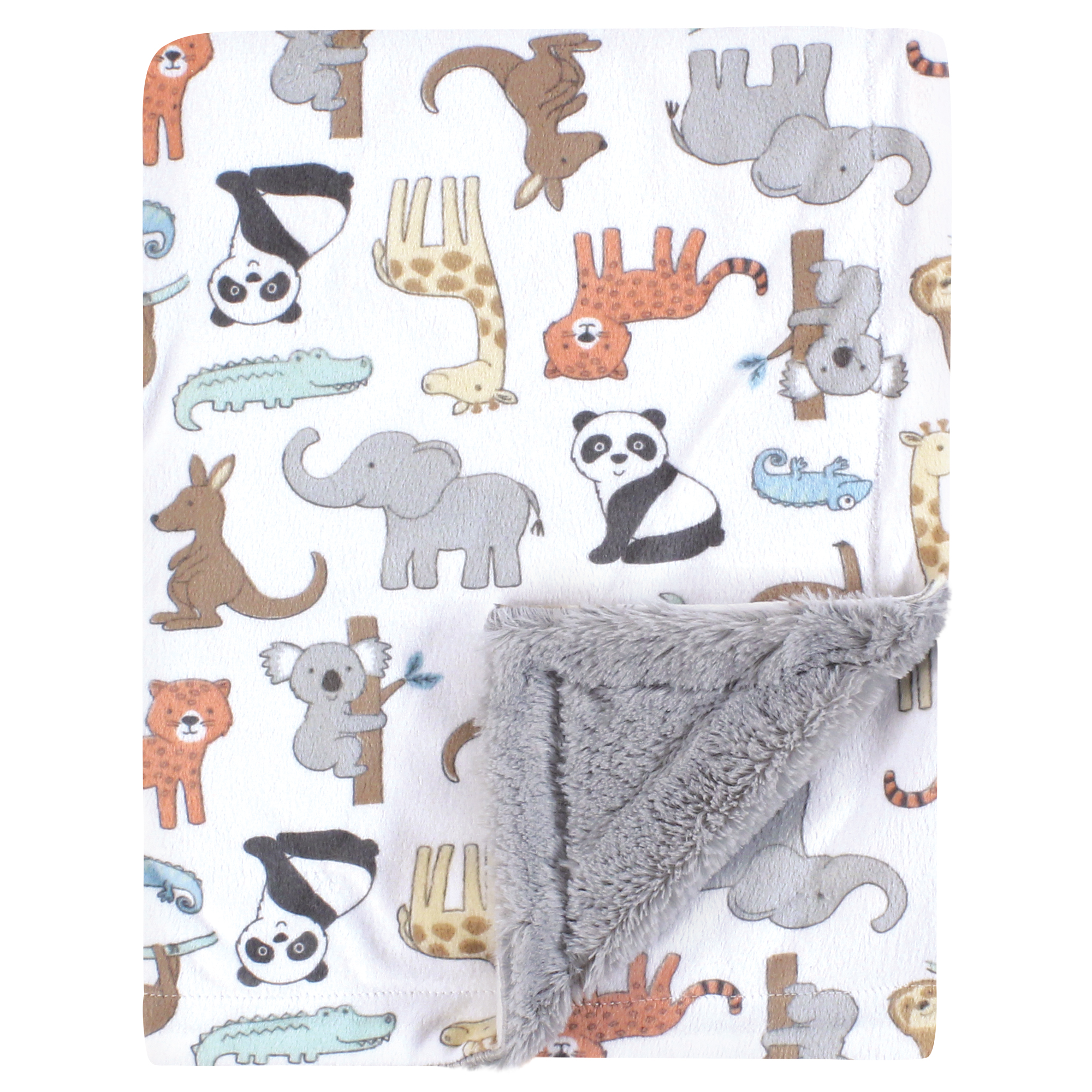 Hudson Baby Plush Blanket with Furry Binding and Back, Zoo Animals