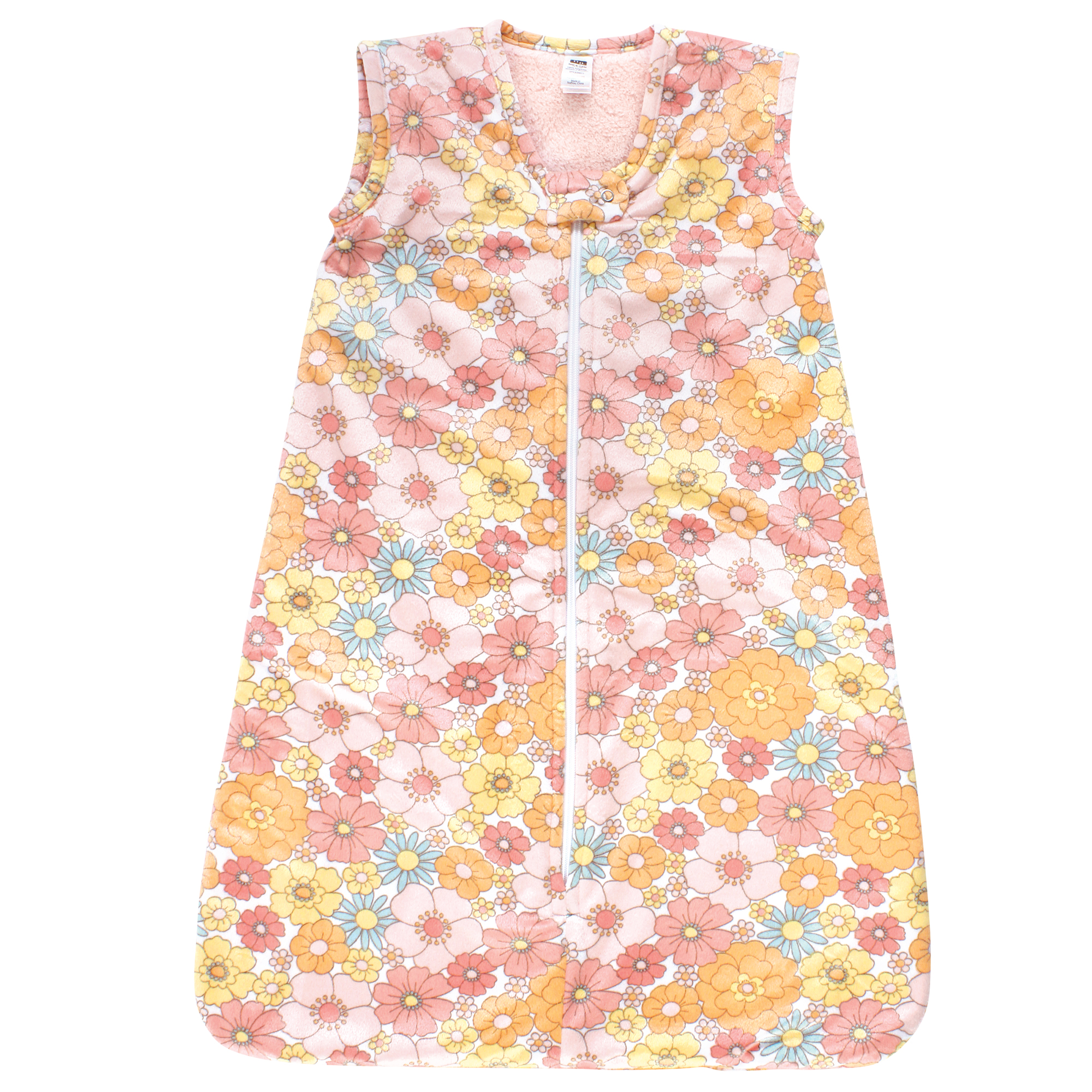 Hudson Baby Plush Faux Fur Sleeping Bag, Wearable Blanket, Peace Love Flowers