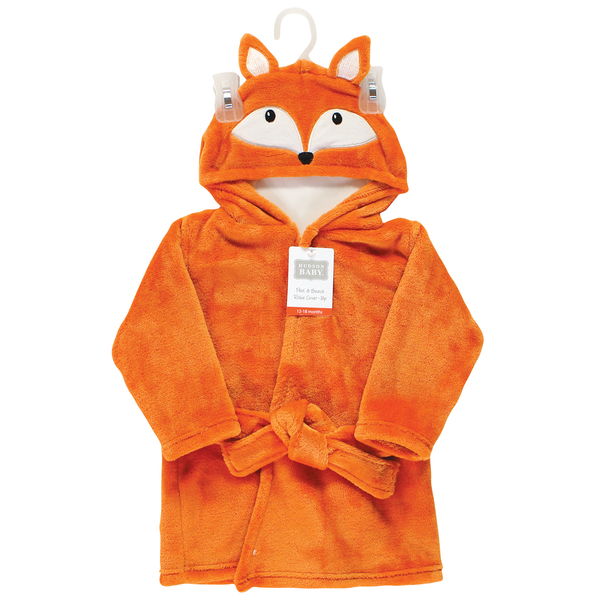 Hudson Baby plush pool and beach robe cover-up is made of super soft, cozy plush material to dry and warm baby after water activities. Our cozy fabric will be the perfect robe to wrap your baby and toddlers. Our detailed animal hood designs are sure to make water time more fun and adventurous. Robe is intended to fit above the knee.