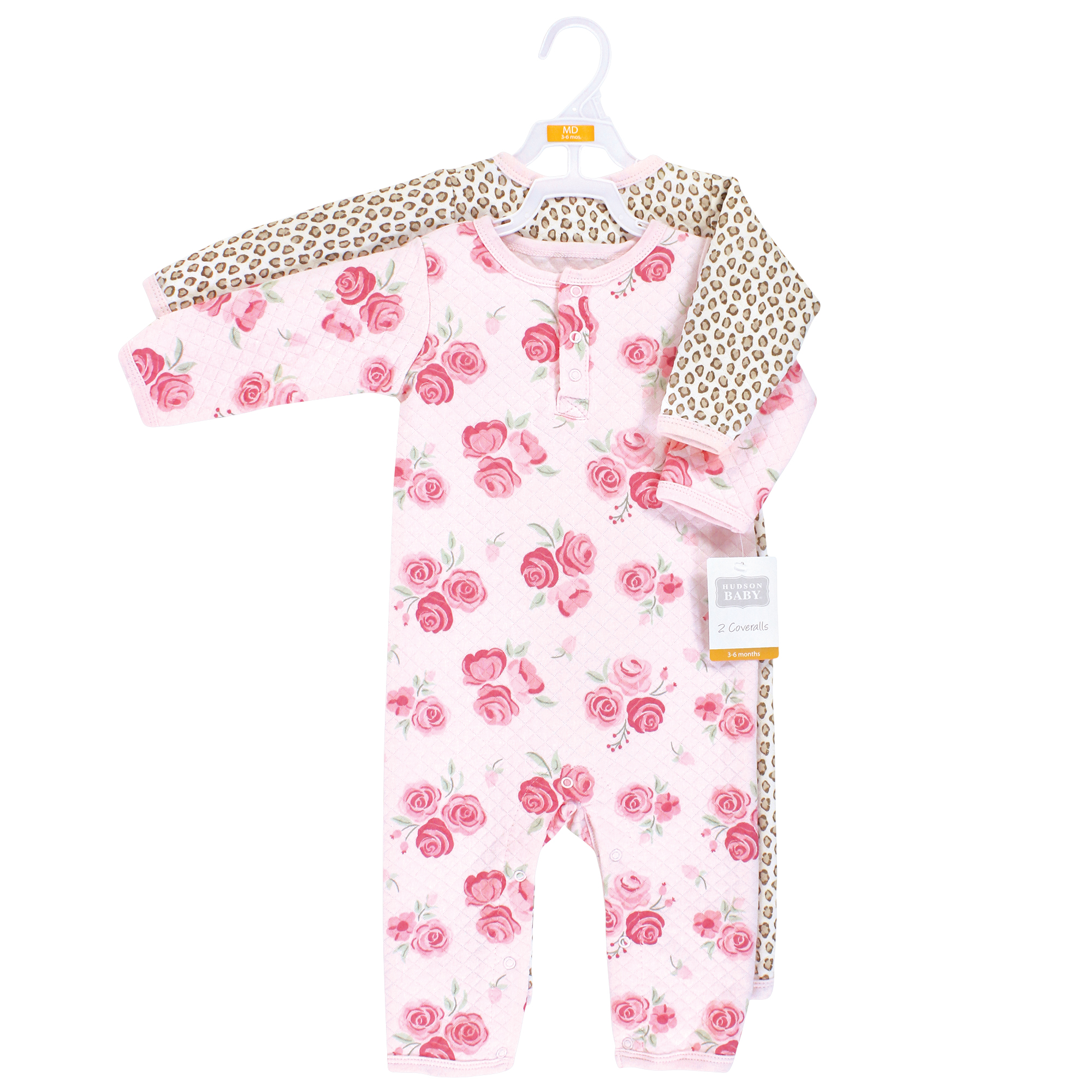 Hudson Baby Premium Quilted Coveralls, Blush Rose Leopard