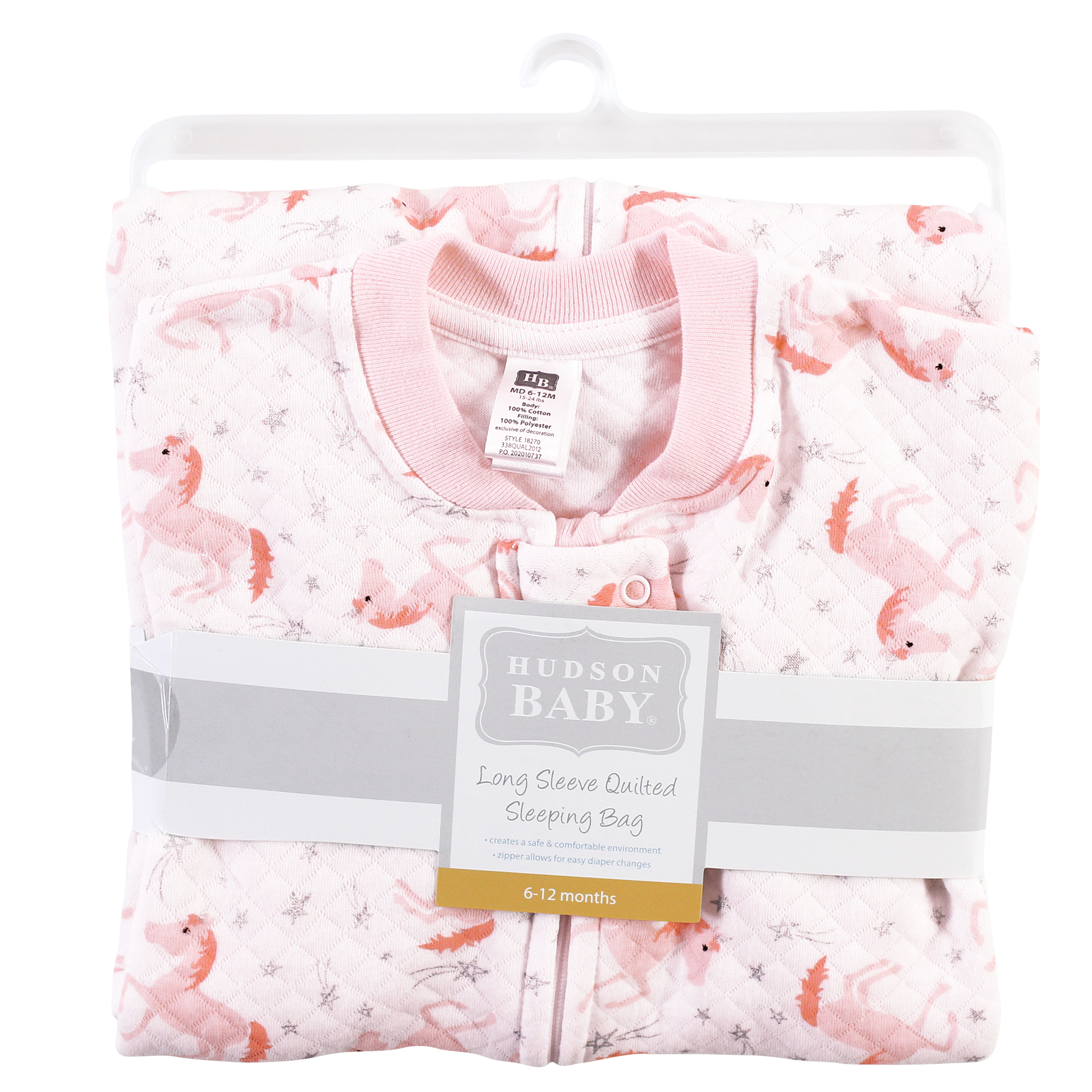 Hudson Baby premium quilted cotton sleeping bag and wearable blanket is the perfect safe sleep blanket for your little one to have a warm, cozy, comfortable and safe night of sleep. Our quilted fabric is made of soft, delightful cotton with polyester filling. Our wearable blanket is designed long-sleeve because it is made with a light cotton material, providing the perfect balance of keeping baby warm while still keeping baby safe from overheating. Our zipper closure makes for easy on and off dressing, which is especially convenient for night time diaper changes. Our sleep sack will replace loose blankets in the crib and will keep your little one cozy, warm and secure throughout the night.