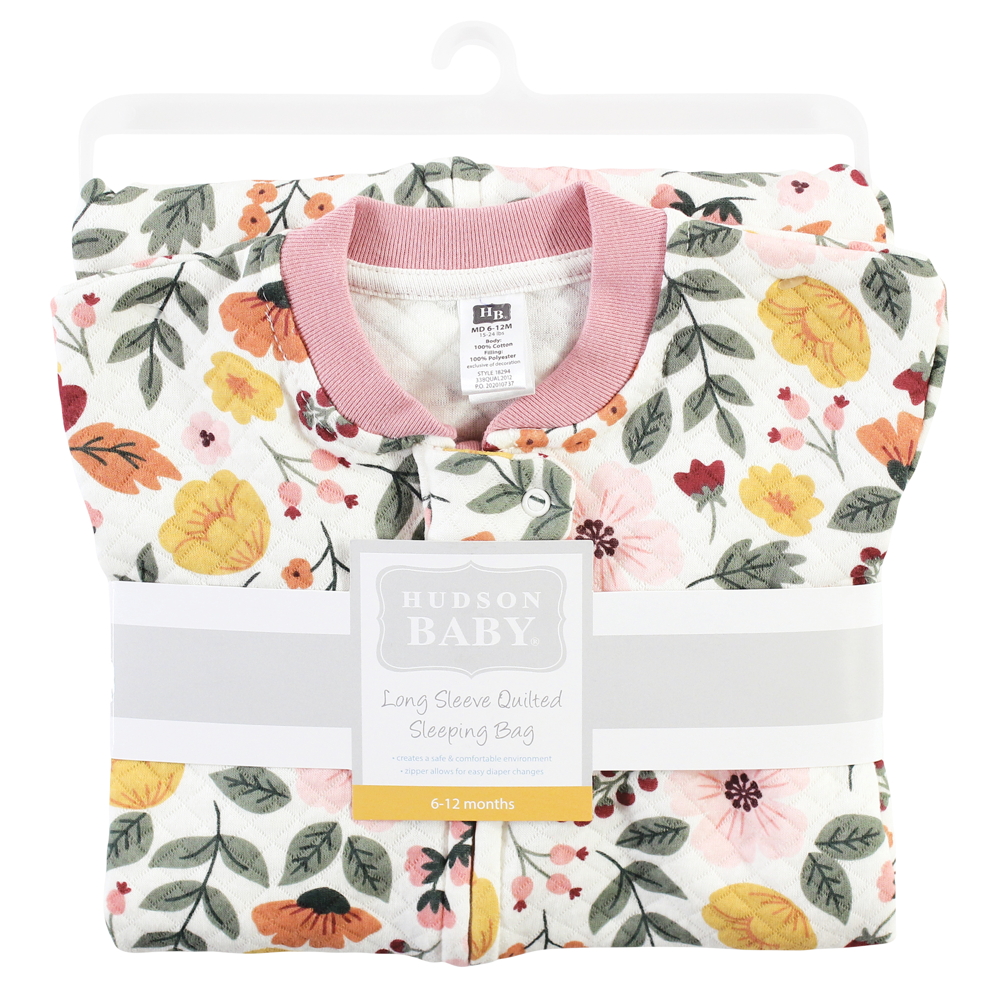Hudson Baby Premium Quilted Long Sleeve Sleeping Bag and Wearable Blanket, Fall Botanical