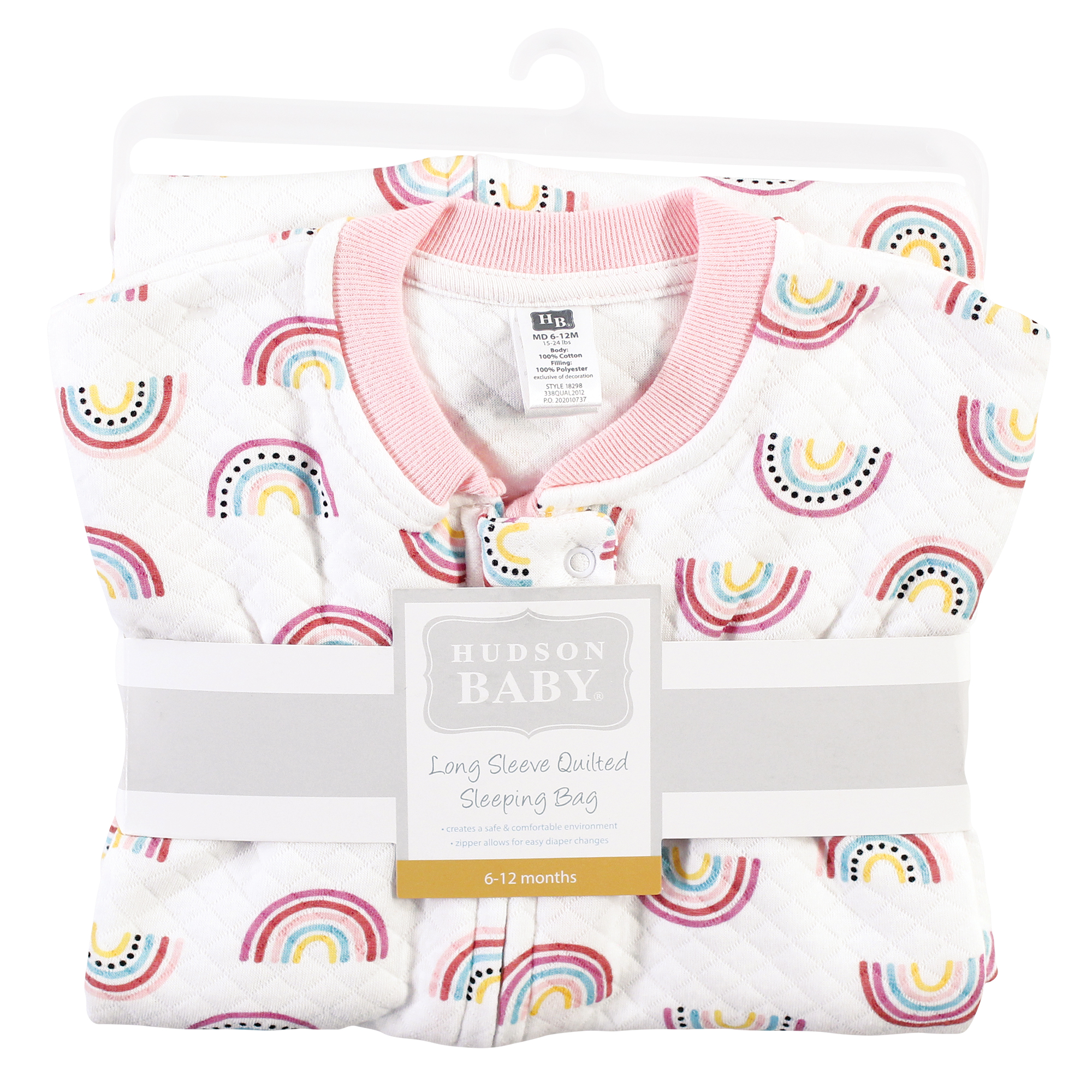 Hudson Baby premium quilted cotton sleeping bag and wearable blanket is the perfect safe sleep blanket for your little one to have a warm, cozy, comfortable and safe night of sleep. Our quilted fabric is made of soft, delightful cotton with polyester filling. Our wearable blanket is designed long-sleeve because it is made with a light cotton material, providing the perfect balance of keeping baby warm while still keeping baby safe from overheating. Our zipper closure makes for easy on and off dressing, which is especially convenient for night time diaper changes. Our sleep sack will replace loose blankets in the crib and will keep your little one cozy, warm and secure throughout the night.