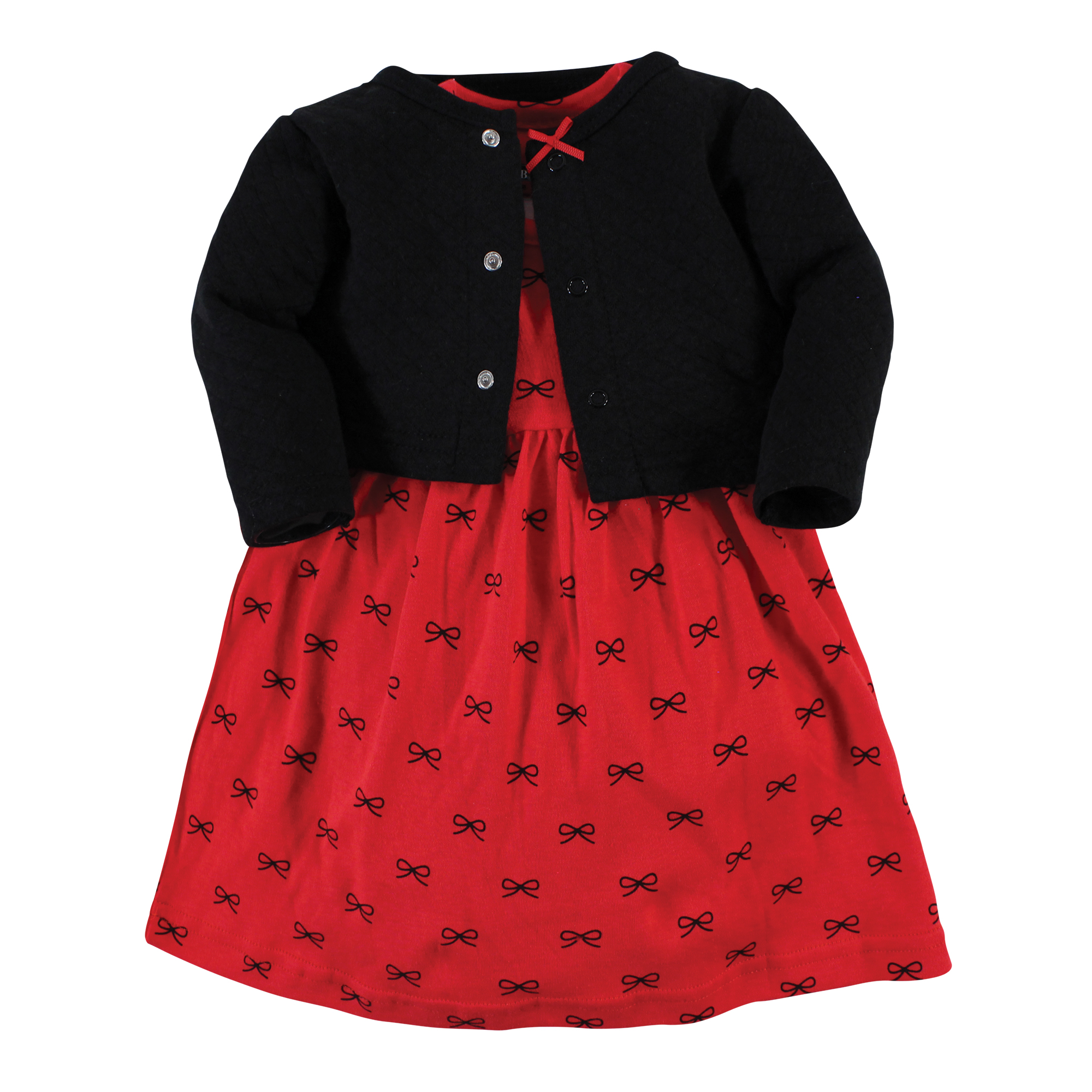 Hudson Baby Quilted Cardigan and Dress, Red Black Bows