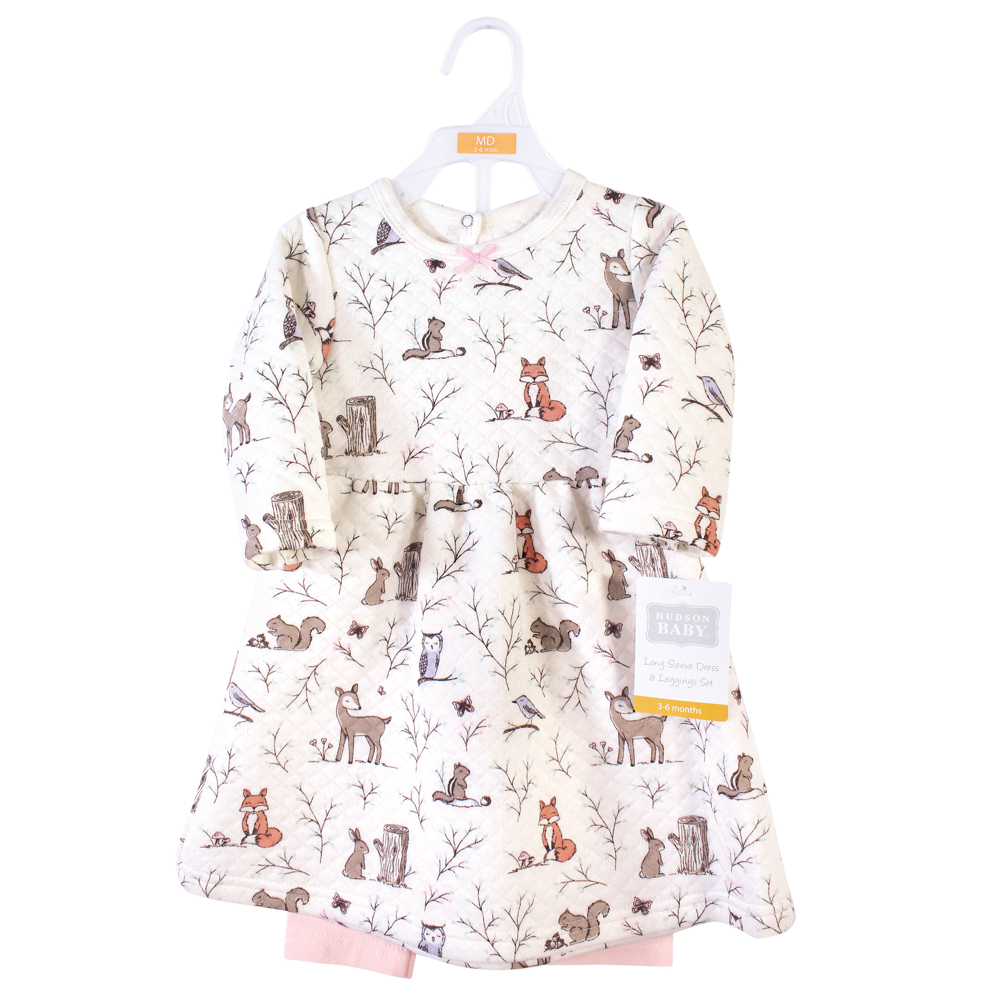 Hudson Baby Quilted Cotton Dress and Leggings, Enchanted Forest
