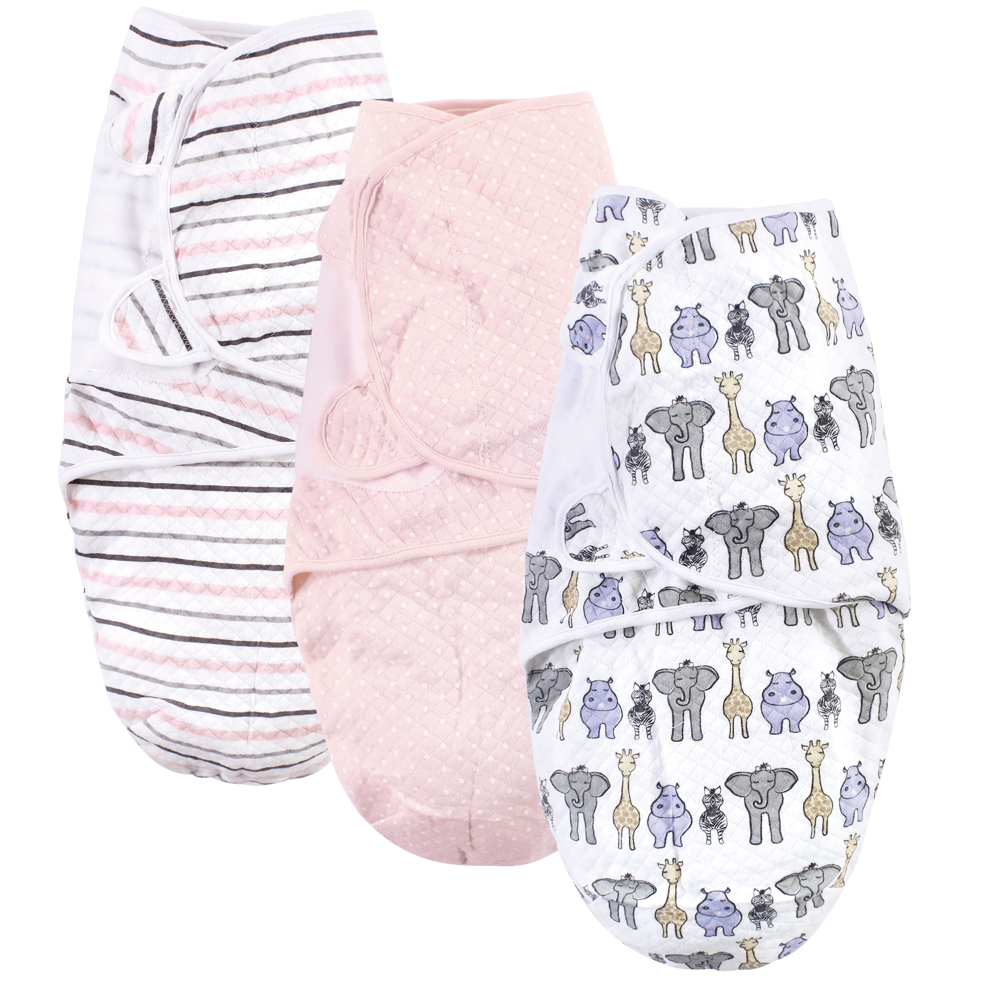 Hudson Baby Quilted Cotton Swaddle Wrap 3pk, Pink Safari