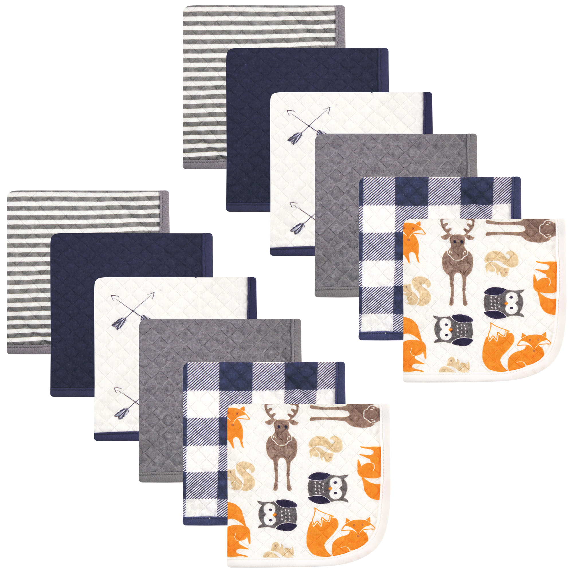 Hudson Baby Quilted Cotton Washcloths, Boy Forest