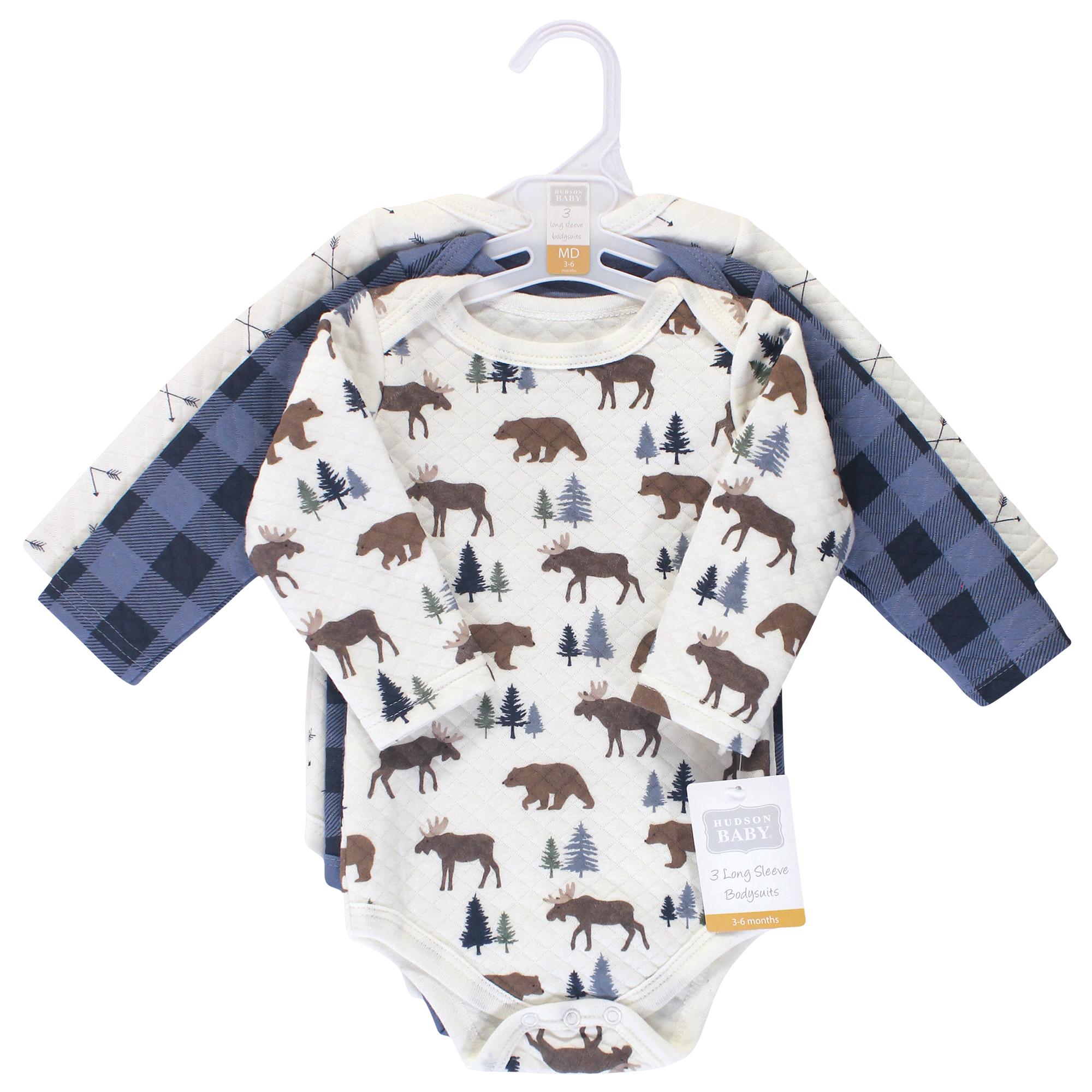 Hudson Baby Quilted Long Sleeve Cotton Bodysuits, Moose Bear
