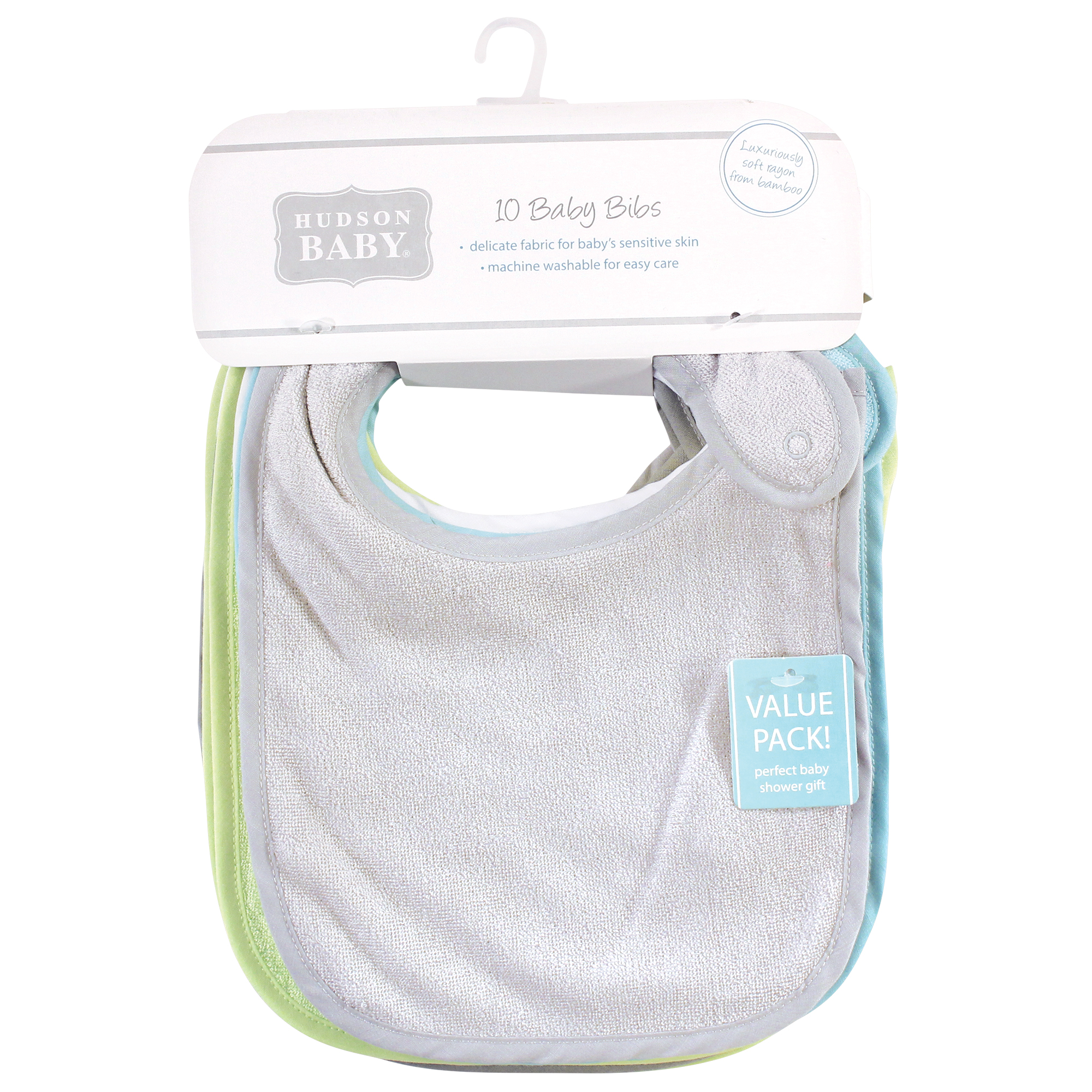 Hudson Baby rayon drooler bibs are a great set of value bibs that absorb your baby's drools and spills. Our bibs feature fun colors of everyday essential bibs that are soft, large and absorbent. Our bibs will protect your little one's adorable outfits from mishaps.