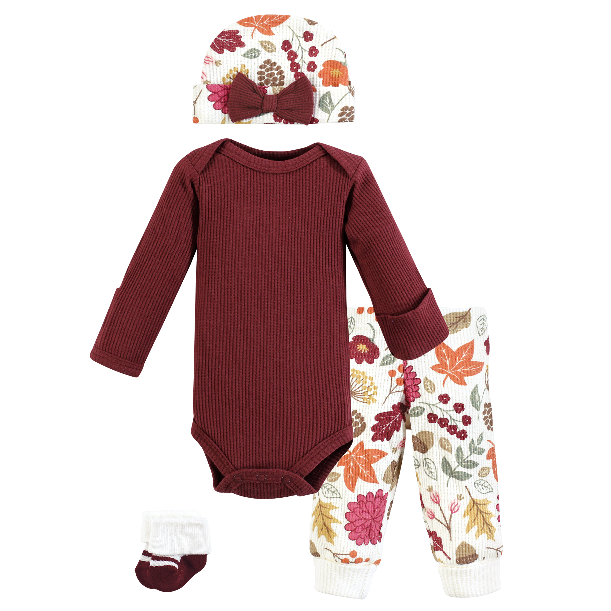 Hudson Baby Thermal Preemie Layette Set 4pc, Acorn Botanical Long Sleeve