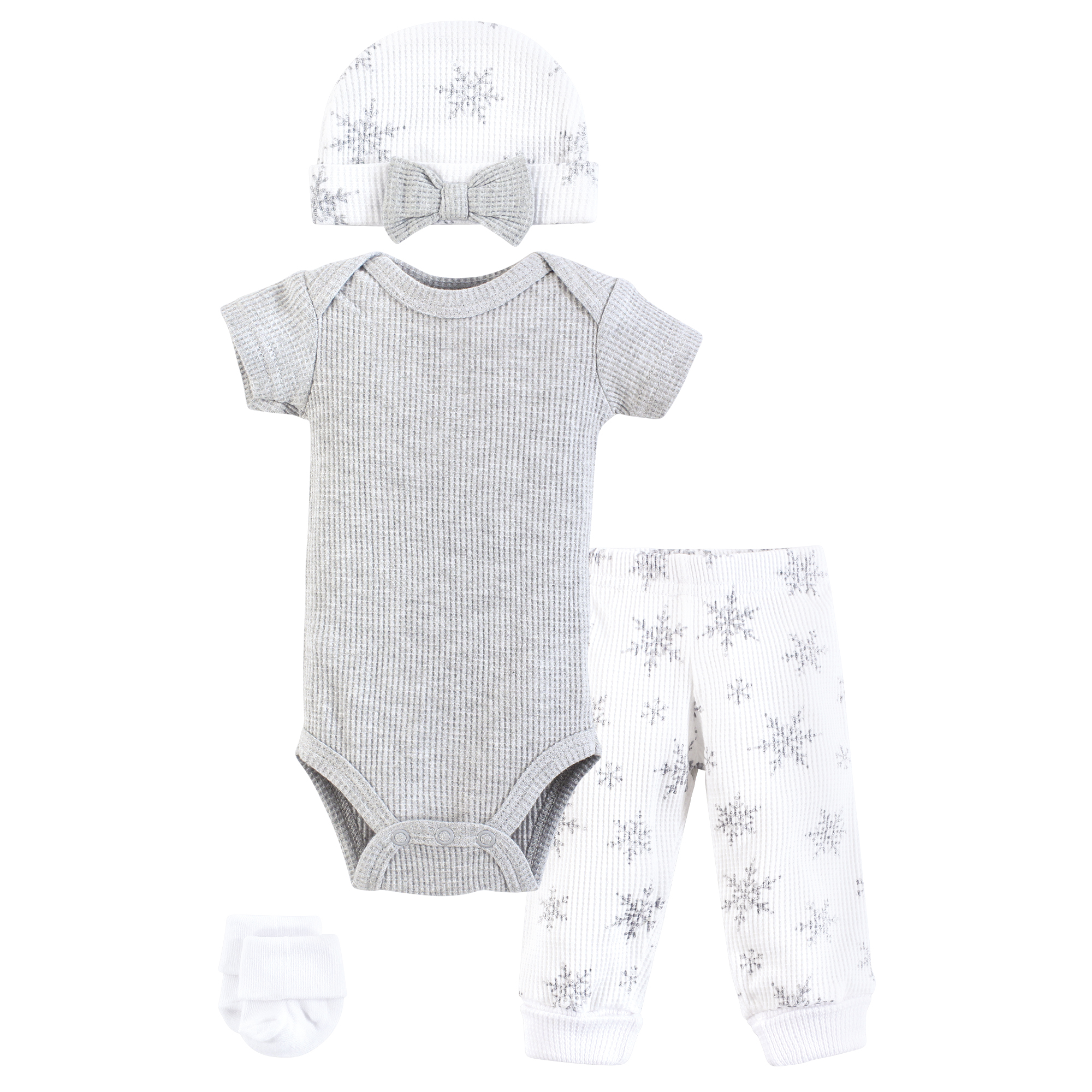 Hudson Baby Thermal Preemie Layette Set 4pc, Snowflake Short Sleeve 1