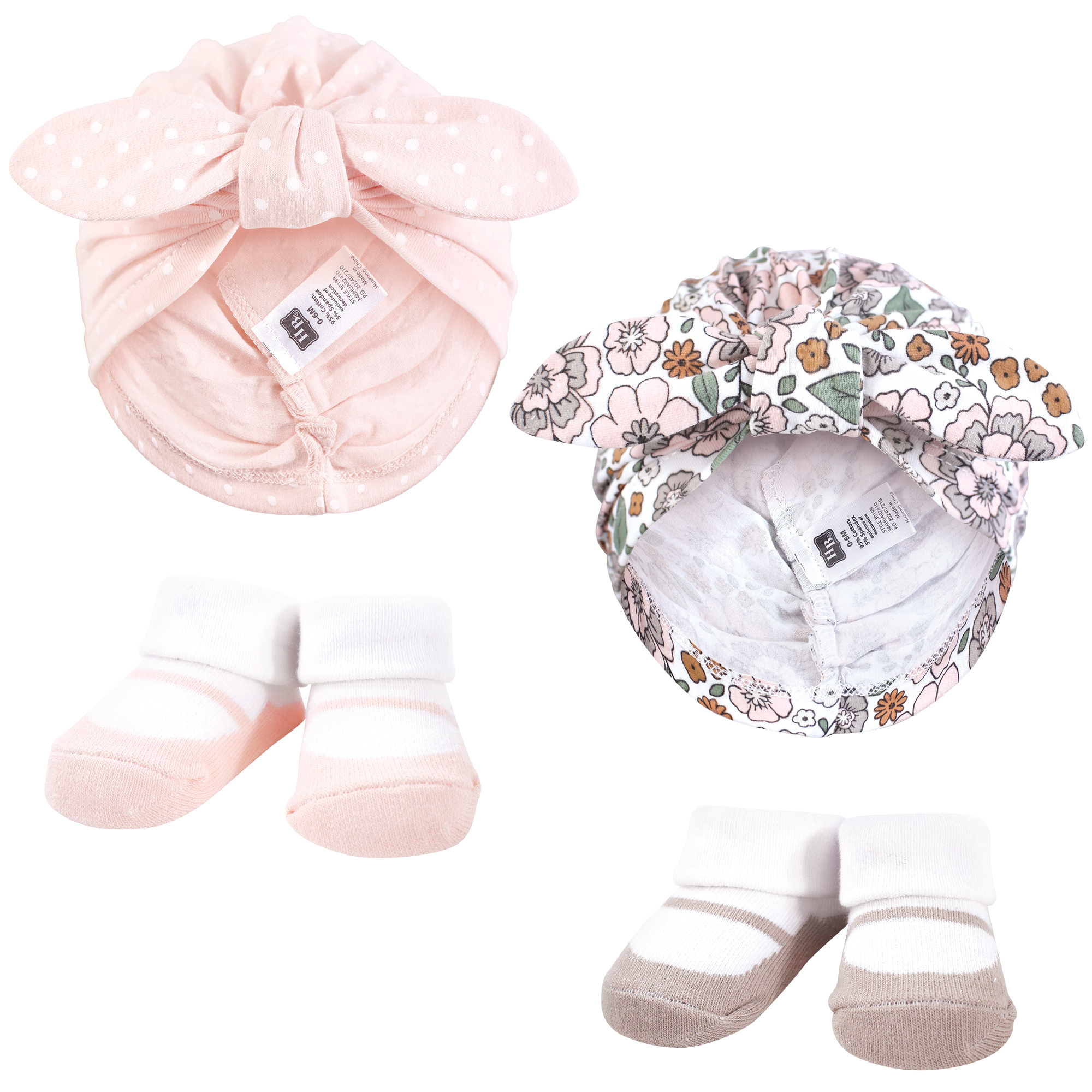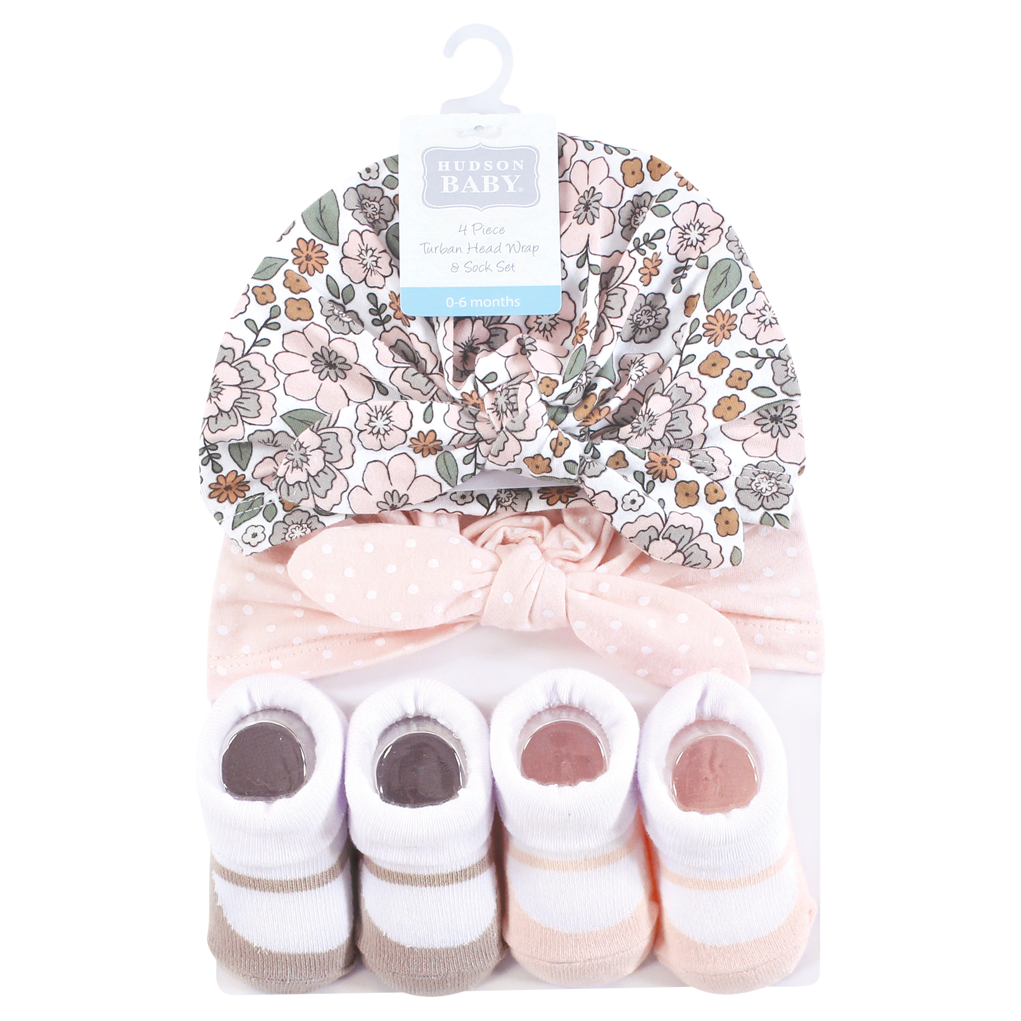 Hudson Baby Turban and Socks Set, Outline Warm Floral