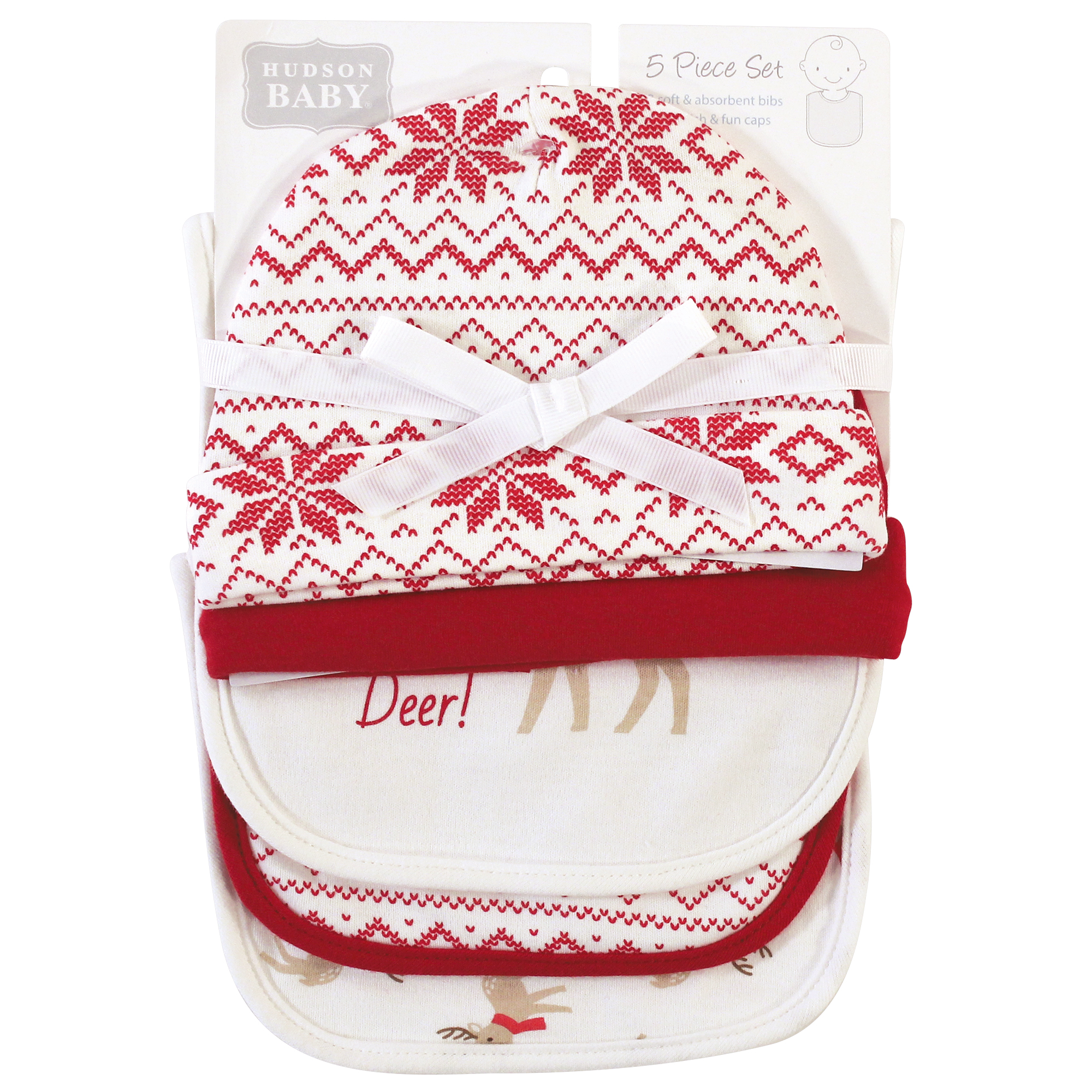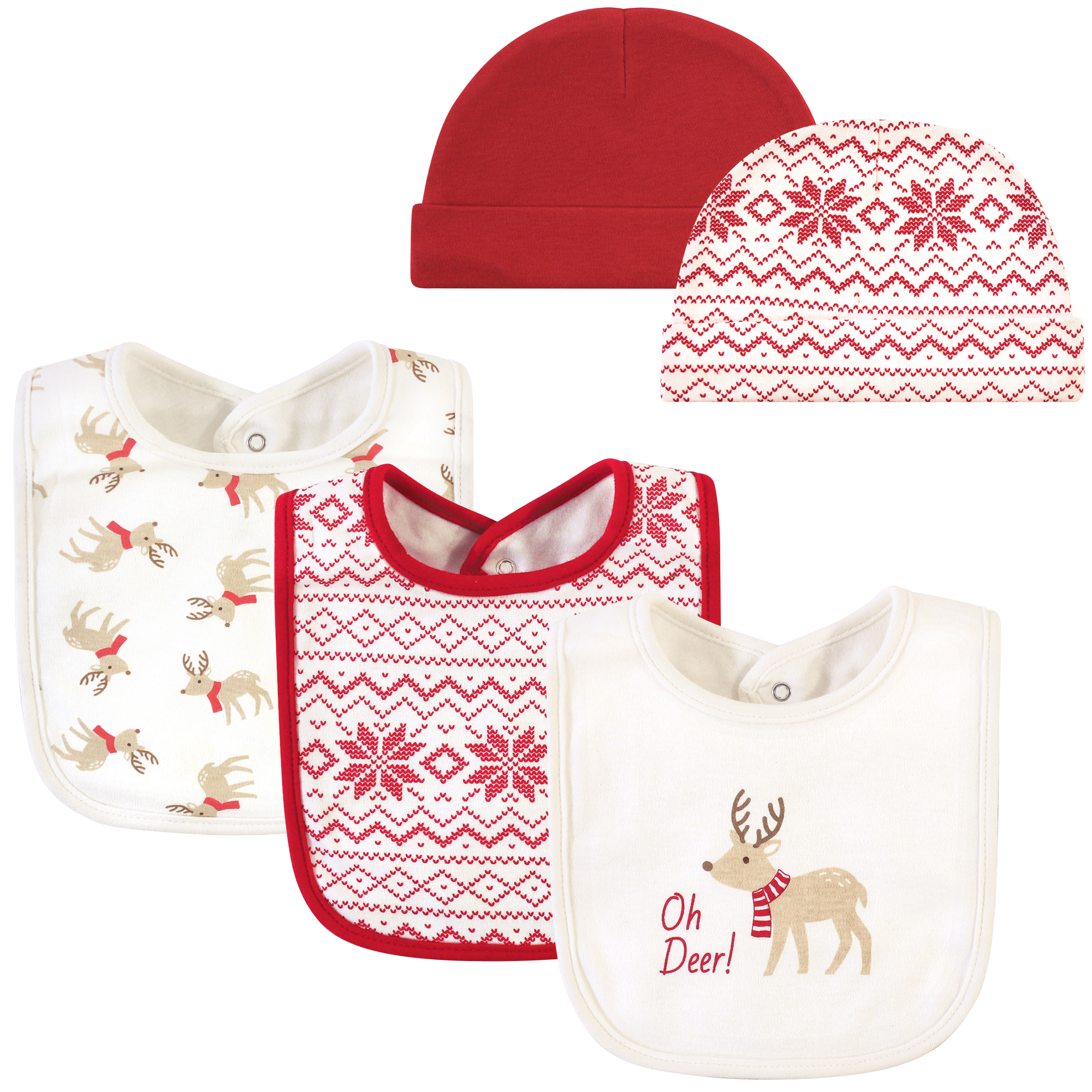 Hudson Baby Cotton Bib and Headband or Caps Set, Oh Deer