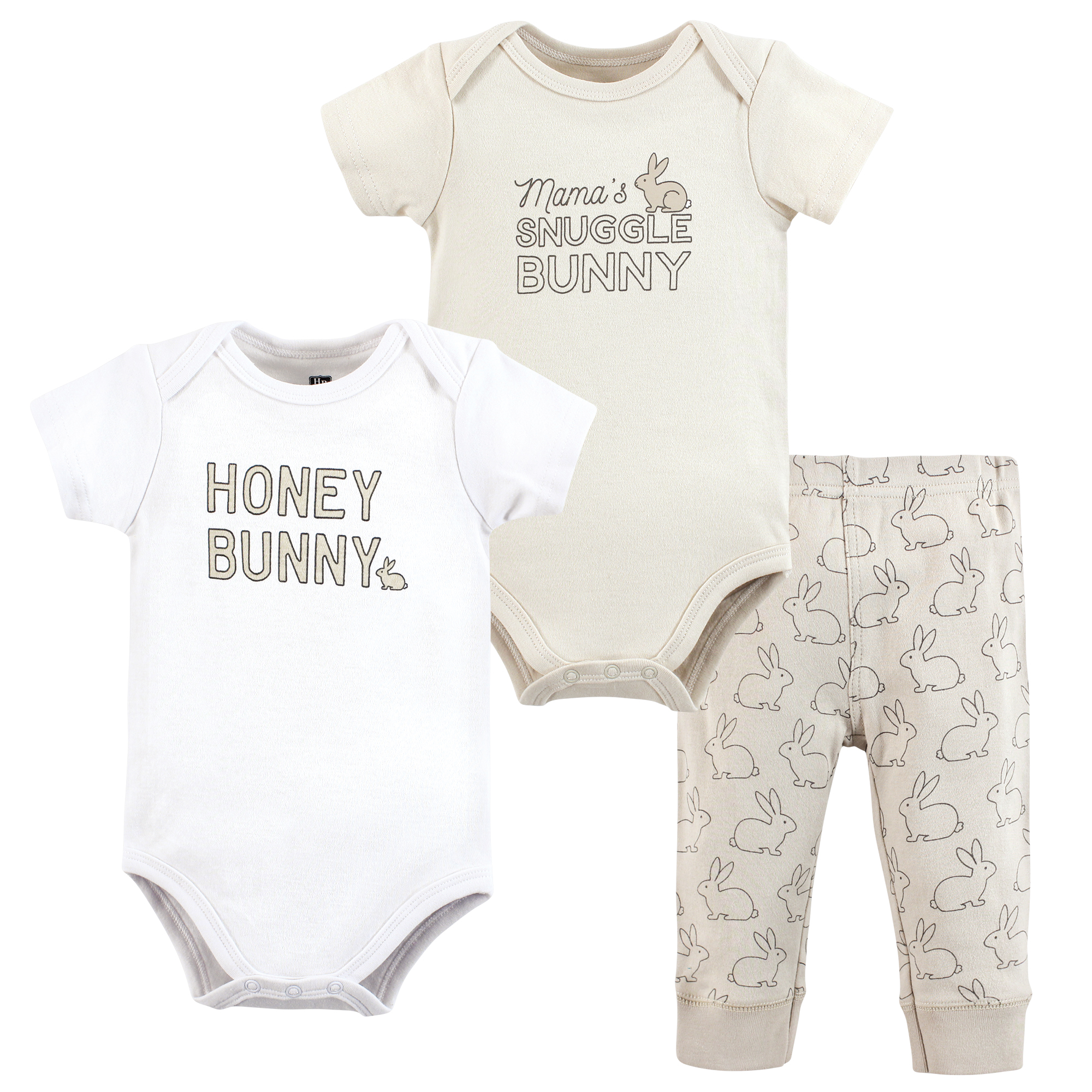 Hudson Baby bodysuit and pant sets are perfect if you are looking for easy and cute coordinating outfits. Our clothing is made of 100% super soft cotton and durable for everyday wear. Our clothing will sets make dressing your little one easy and you can be confident your baby will be comfortable, stylish and matching in our outfits.