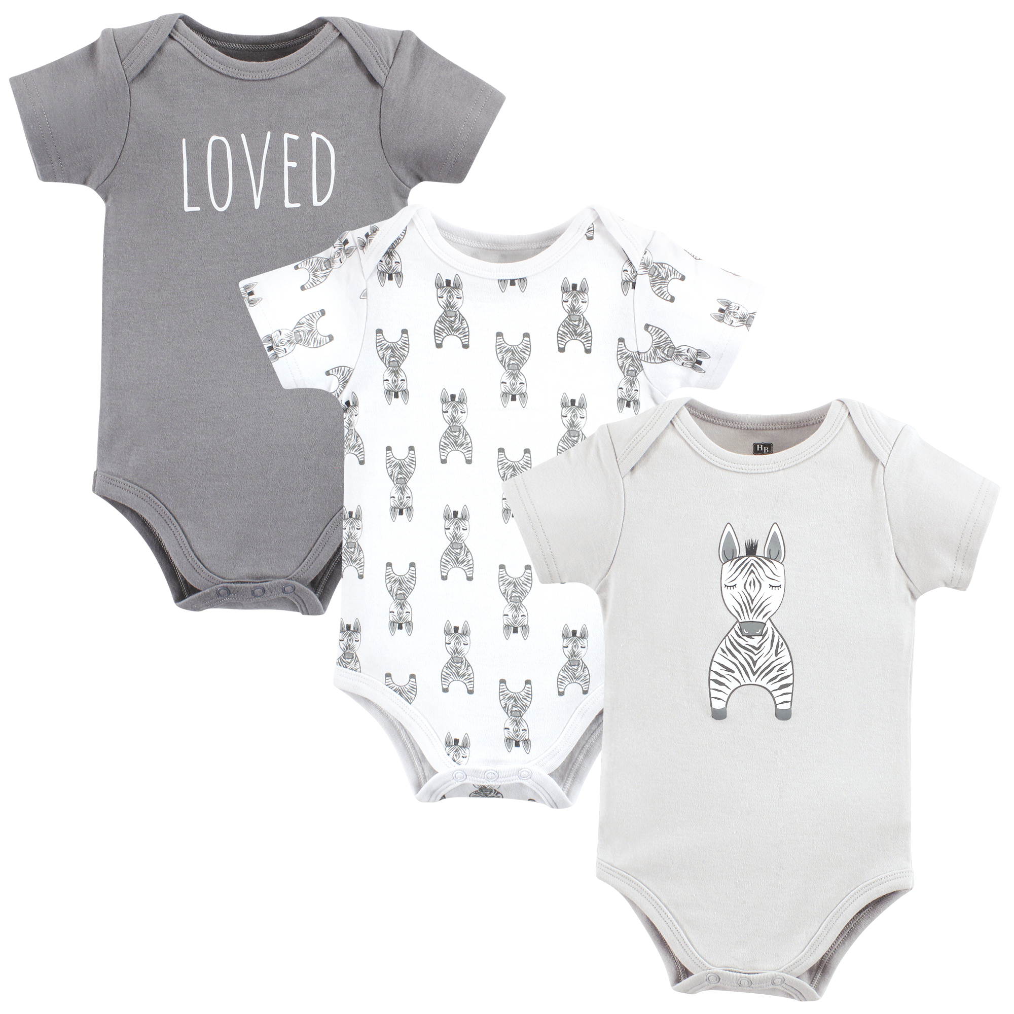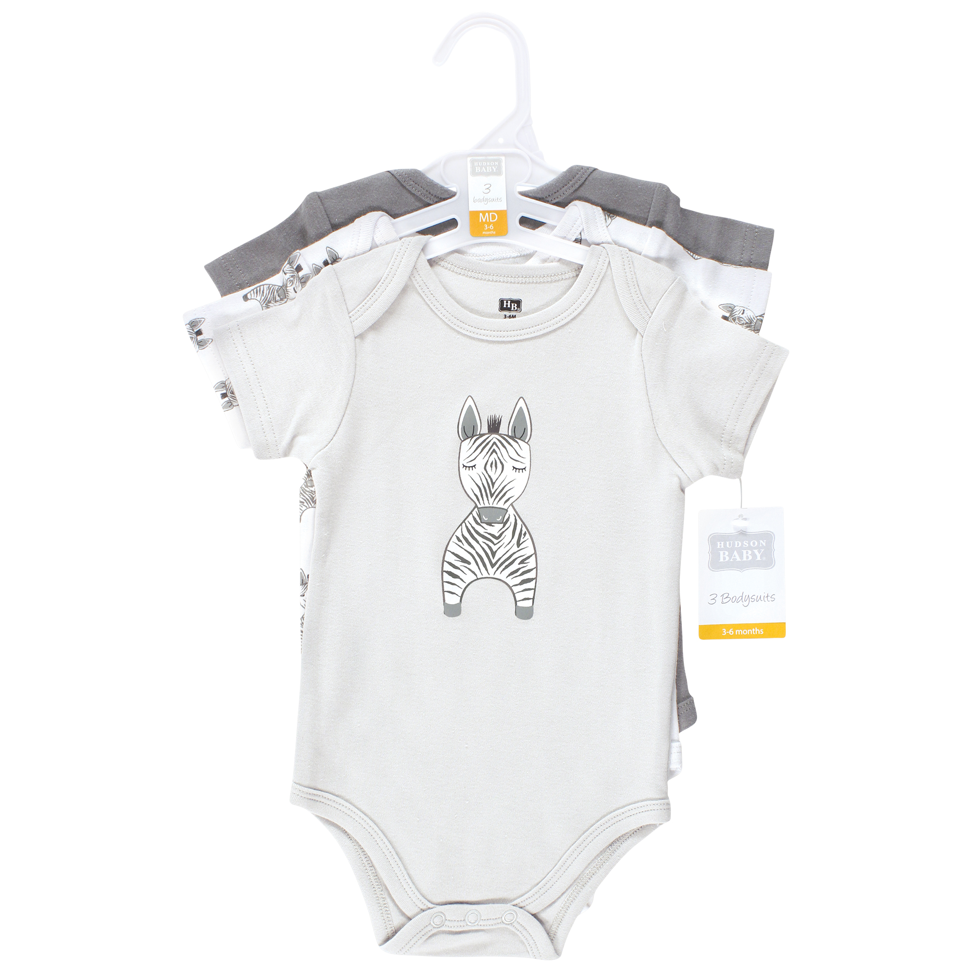Hudson Baby Unisex Baby Cotton Bodysuits 3-Pack, Modern Zebra