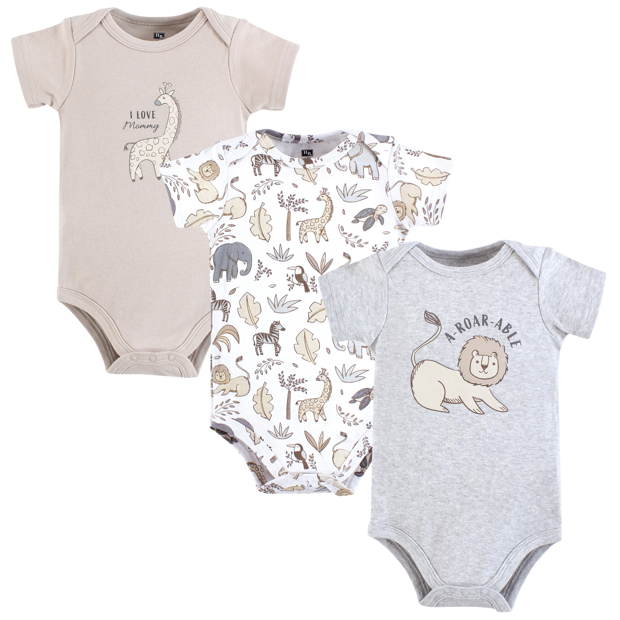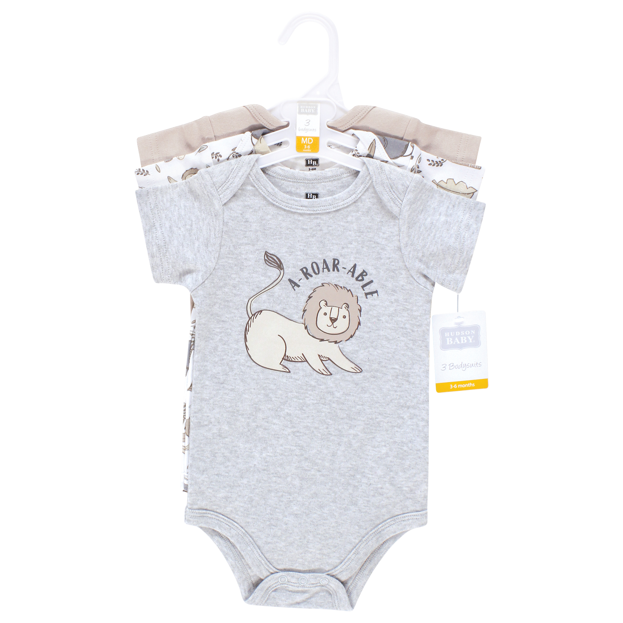 Hudson Baby Unisex Baby Cotton Bodysuits 3-Pack, Neutral Safari