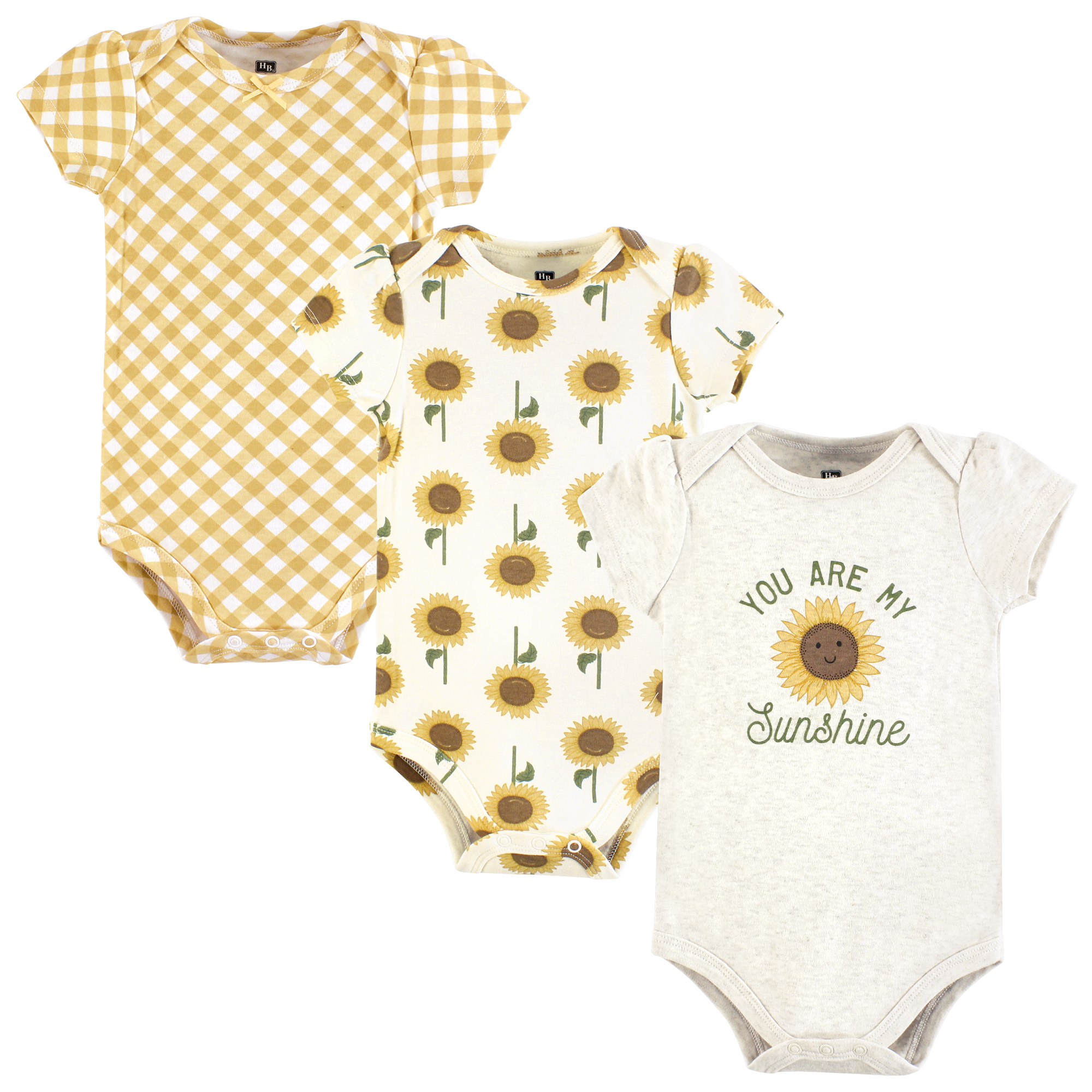 Hudson Baby Unisex Baby Cotton Bodysuits 3-Pack, Sunshine Sunflower