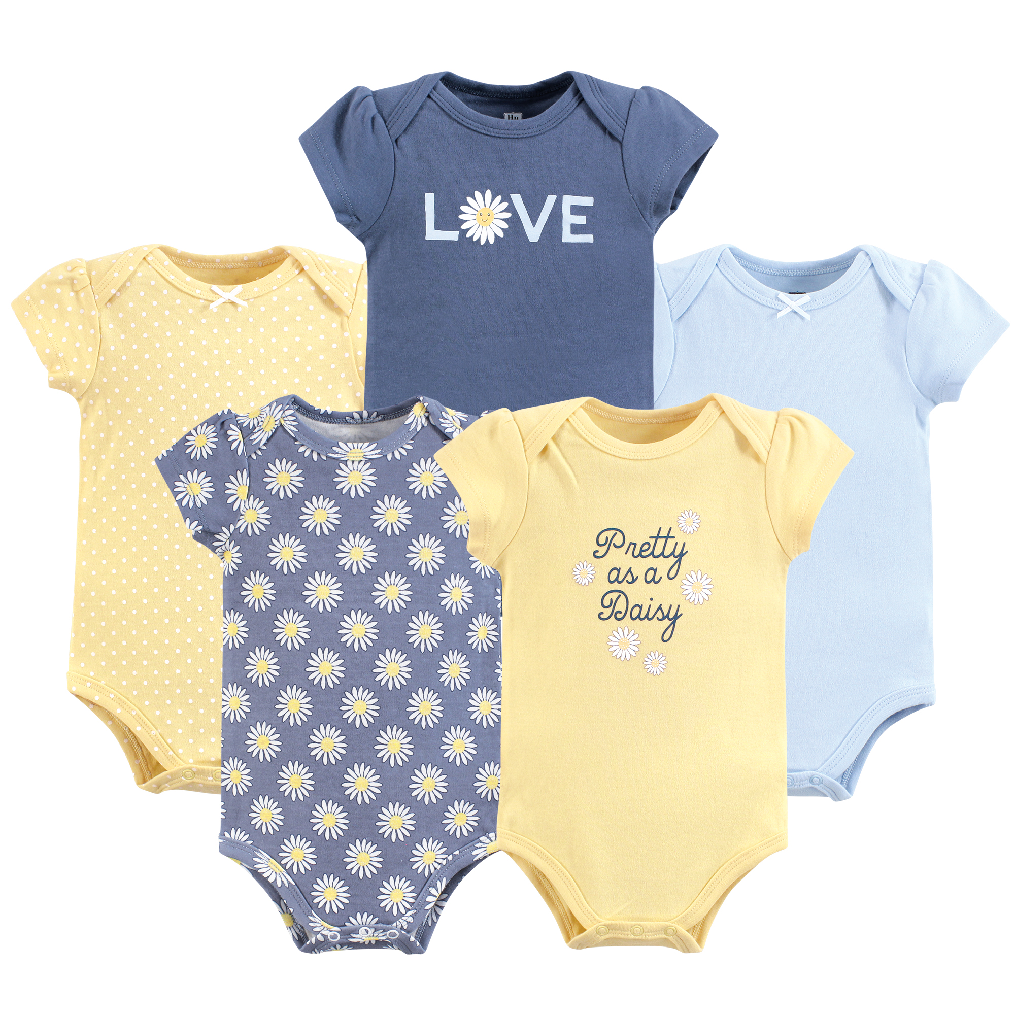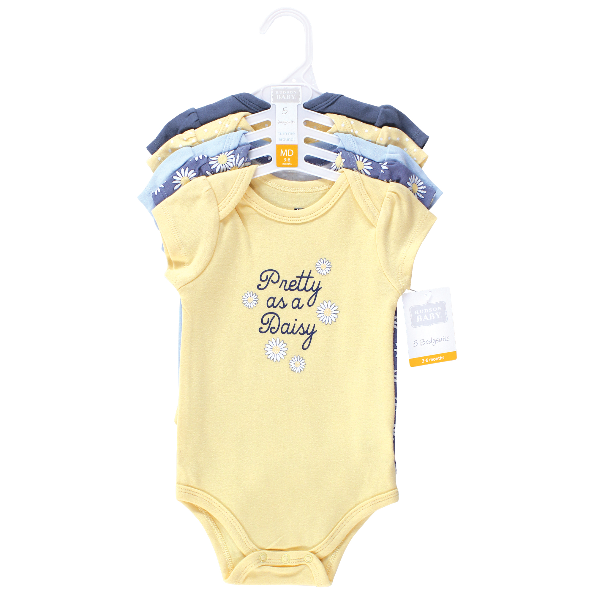 Hudson Baby Unisex Baby Cotton Bodysuits 5-Pack, Blue Yellow Daisy