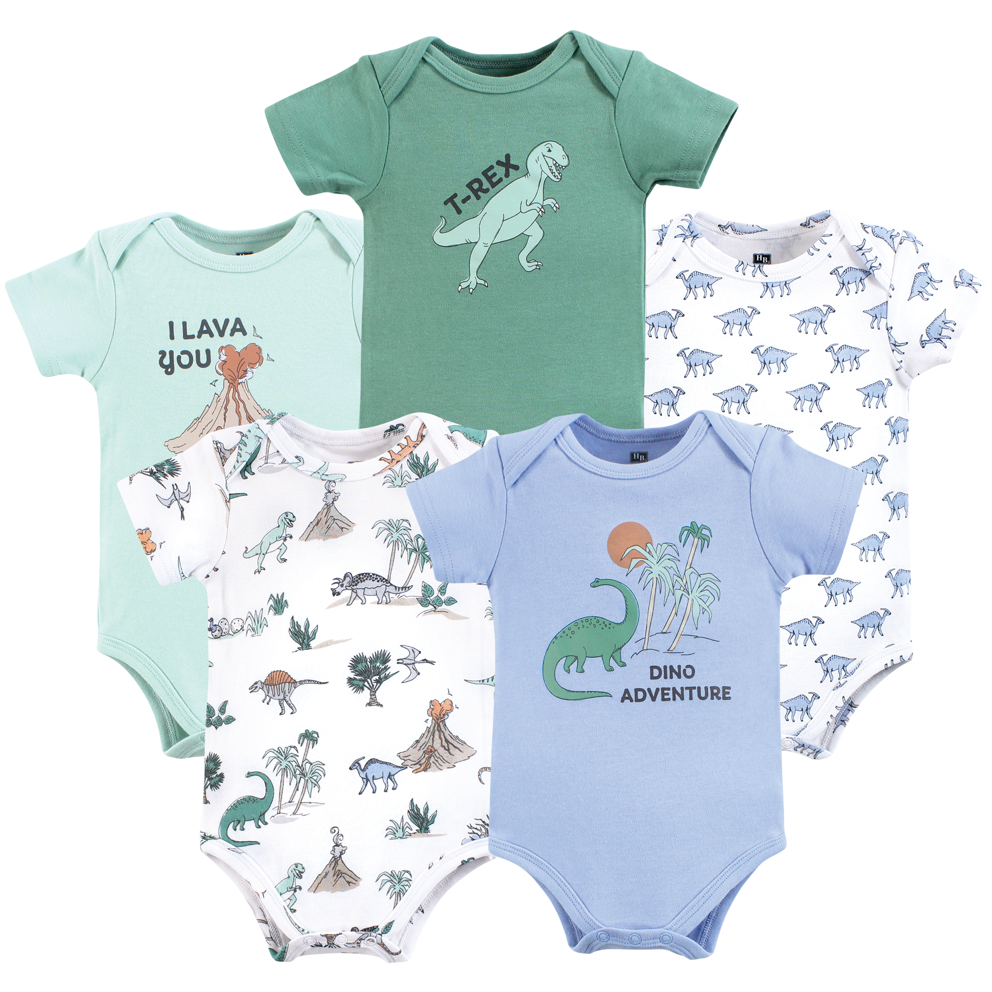 Hudson Baby Unisex Baby Cotton Bodysuits 5-Pack, Boy Dino World