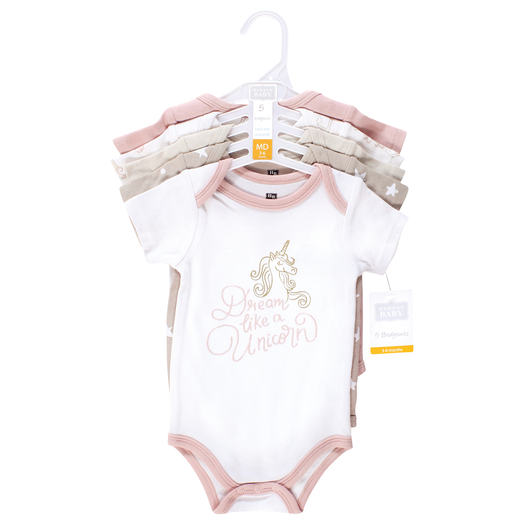Hudson Baby Unisex Baby Cotton Bodysuits 5-Pack, Unicorn Dreams