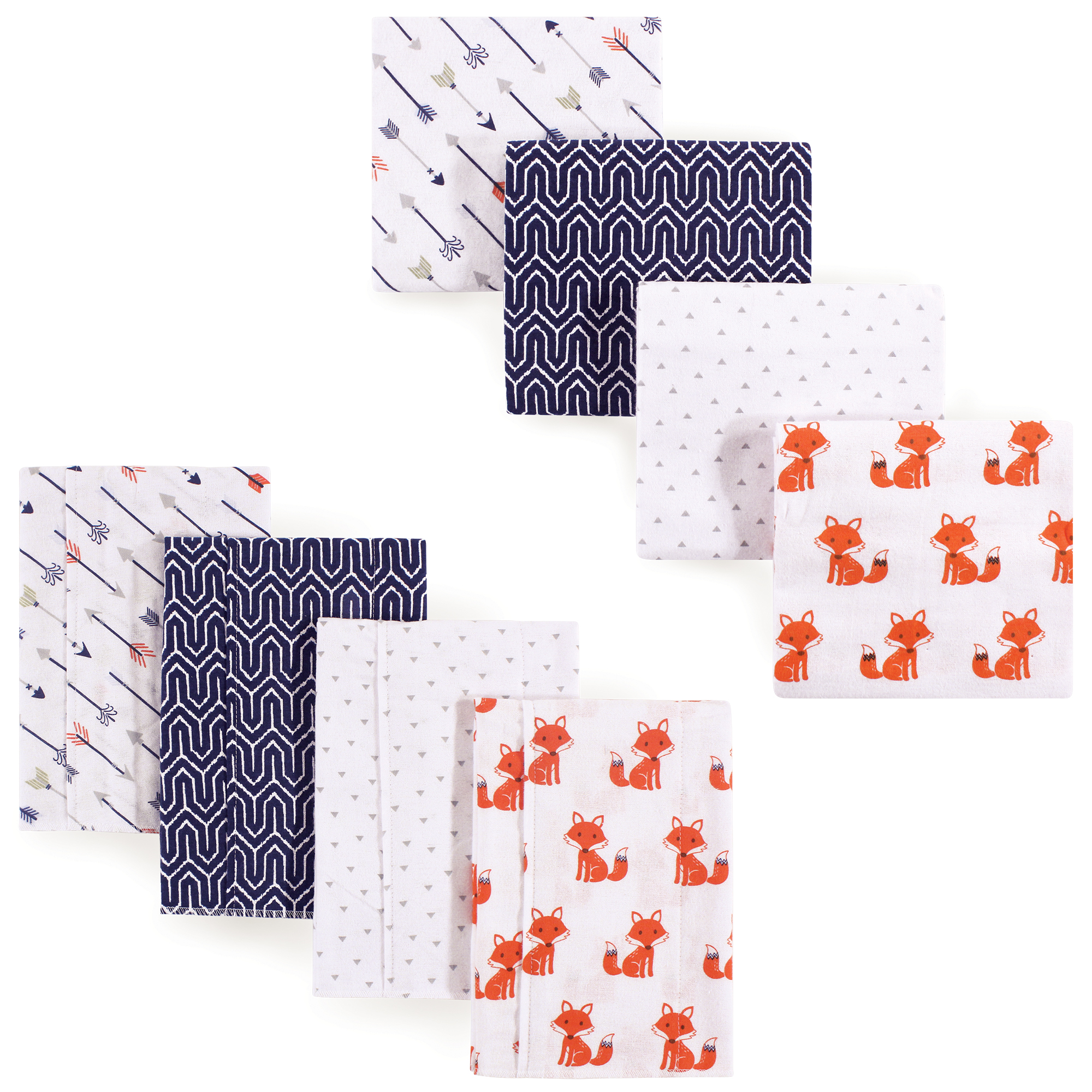 Hudson Baby Cotton Flannel Burp Cloths and Receiving Blankets, 8-Piece, Foxes