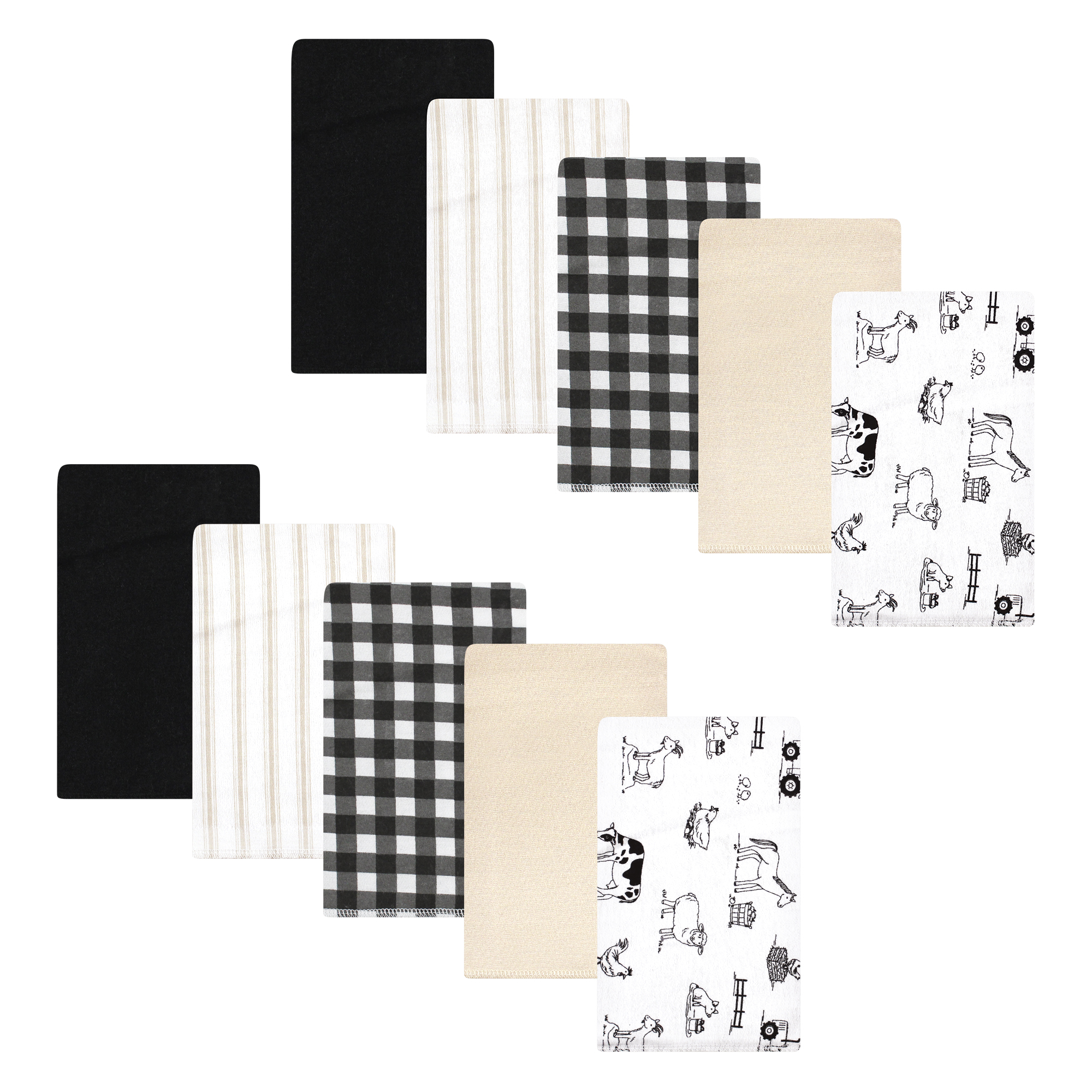 Hudson Baby flannel burp cloths feature multiple layers of fabric to help clean up the messes and spills that you are bound to encounter with your new baby. Our burp cloths are soft and gentle when used on baby's skin and help protect parent's clothes from drool and spills while feeding, burping, and snuggling baby. Our burp cloths will come in handy everyday, whether you are hanging out at home, traveling, or leaving your little one at daycare.
