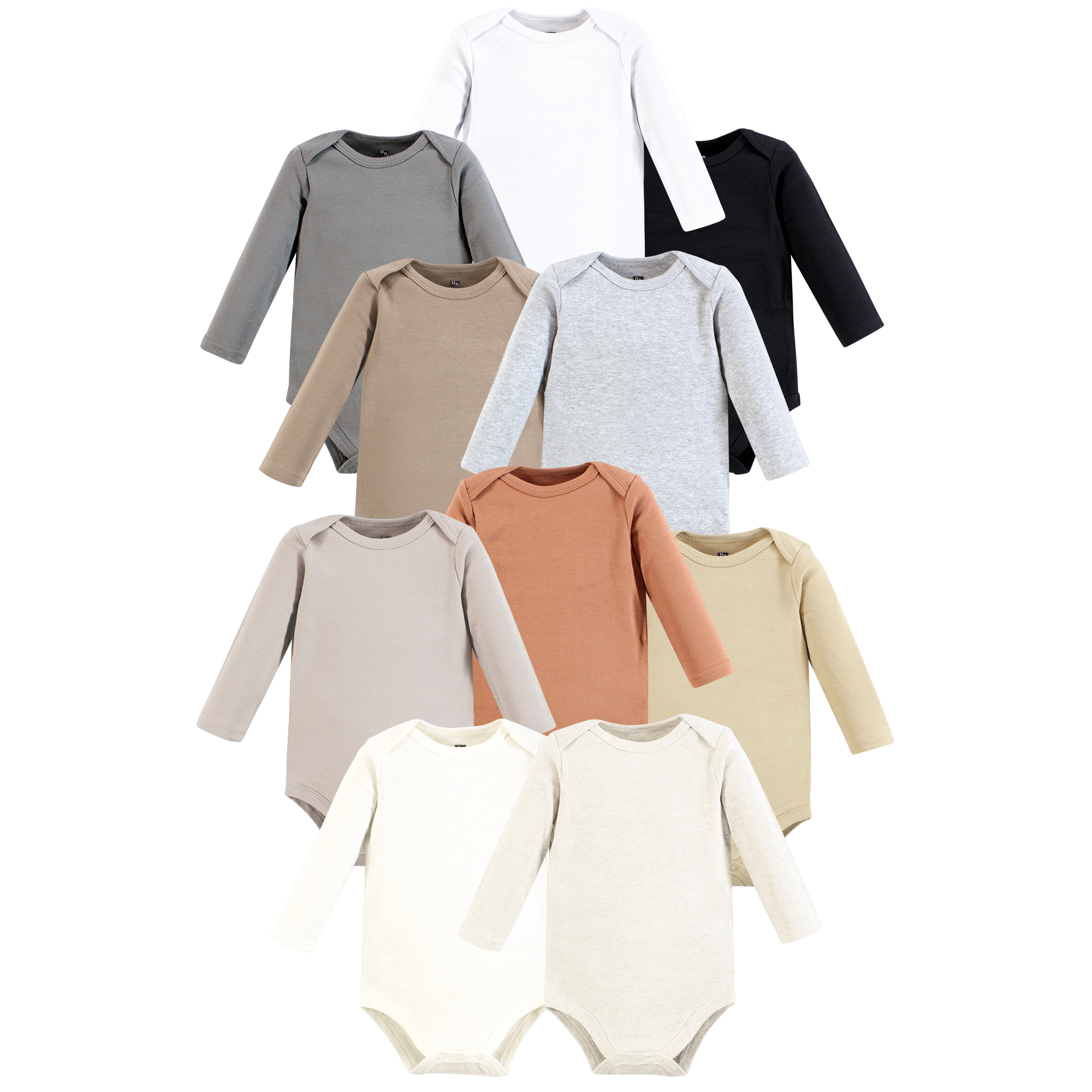 Hudson Baby Unisex Baby Cotton Long Sleeve Bodysuit 10pk, Solid Neutrals Long Sleeve