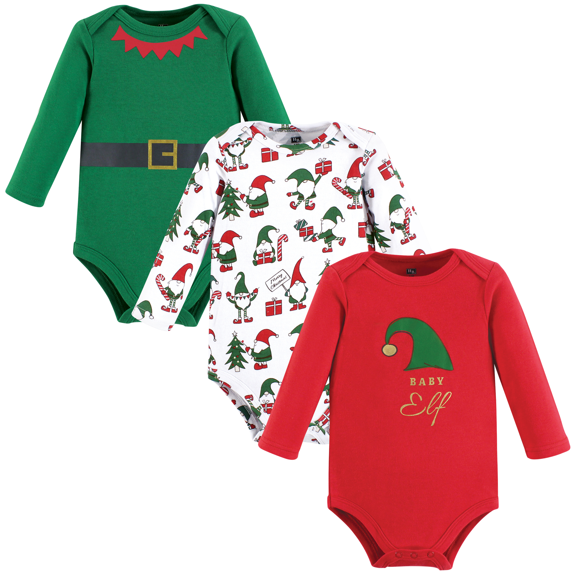 Hudson Baby Unisex Baby Cotton Long-Sleeve Bodysuits 3-Pack, Elf