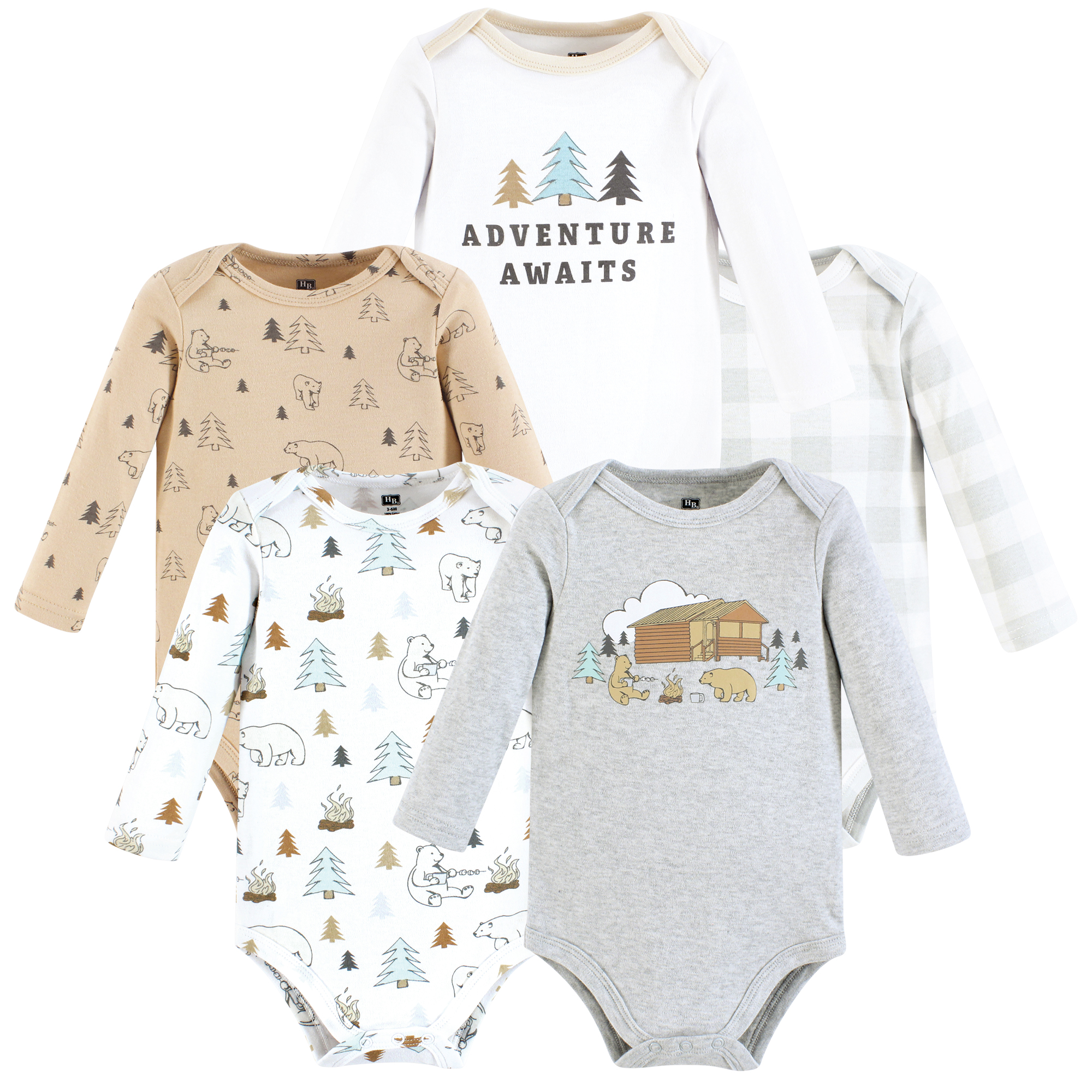 Hudson Baby Unisex Baby Cotton Long-Sleeve Bodysuits 5-Pack, Adventure Awaits