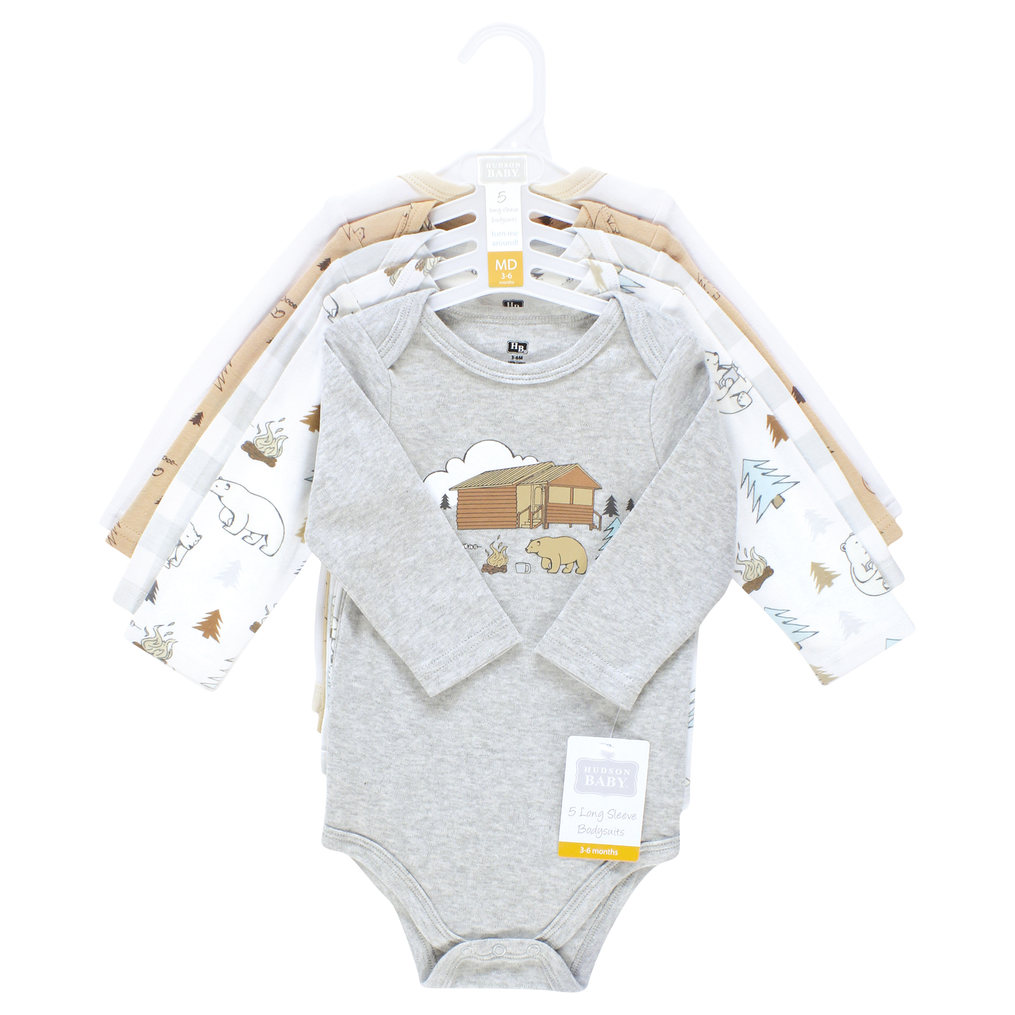 Hudson Baby long-sleeve bodysuits are an essential part of baby's wardrobe. Our bodysuits feature adorable prints, embroideries, stripes and solids and provide a comfortable base layer that's great for pairing with pants, shorts, or even wearing under outfits. Our bodysuits are comfortable and cozy for all-day, everyday wear for your little one.