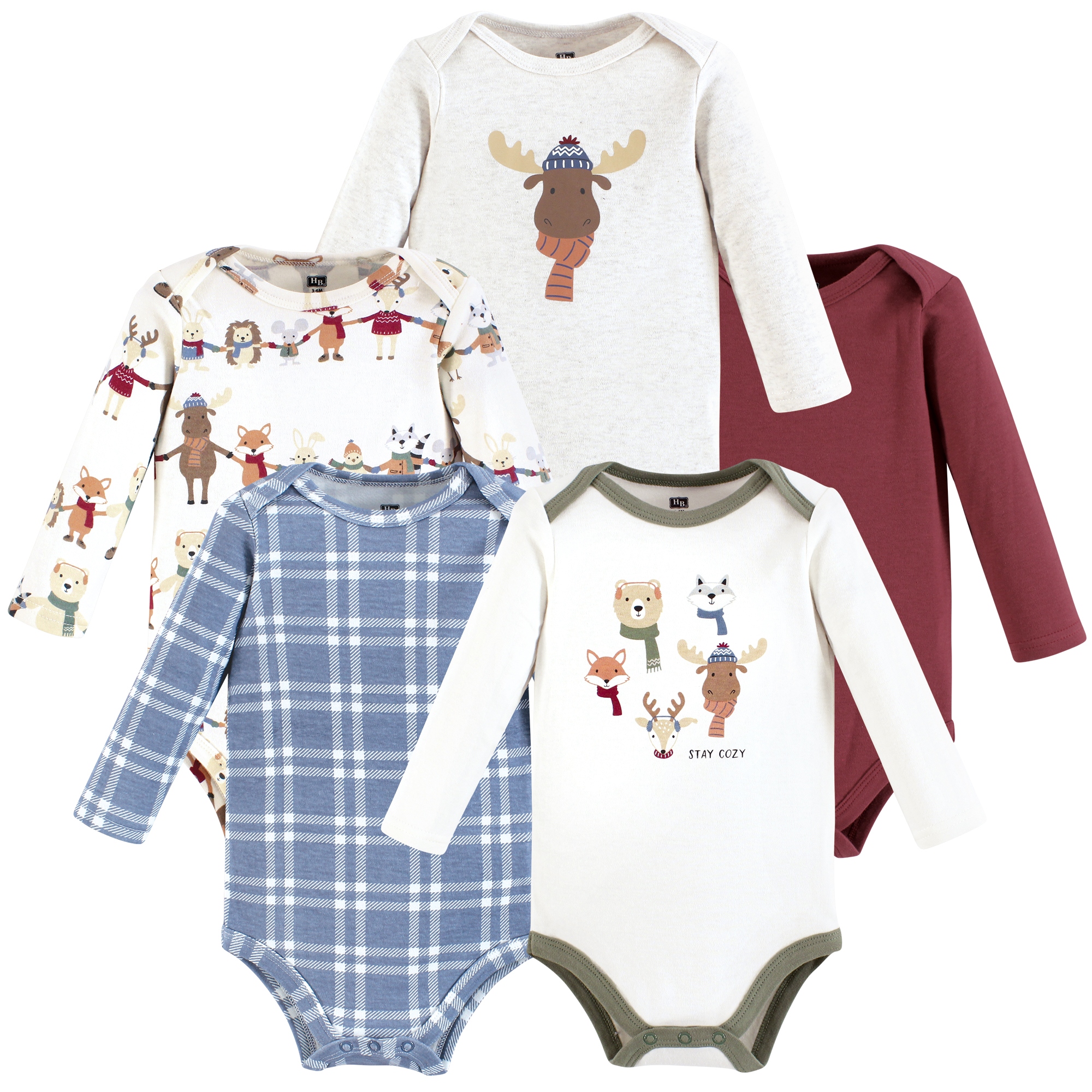 Hudson Baby Unisex Baby Cotton Long-Sleeve Bodysuits 5-Pack, Cozy Woodland Friends