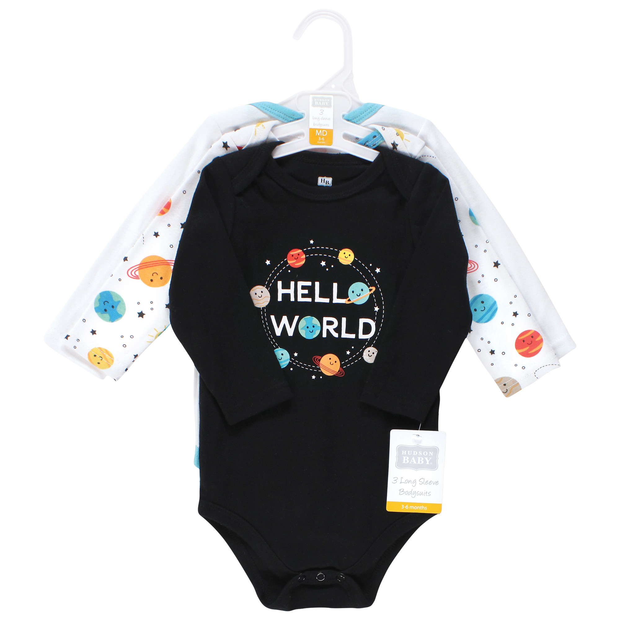 Hudson Baby Cotton Long-Sleeve Bodysuits, Happy Planets 3-Pack