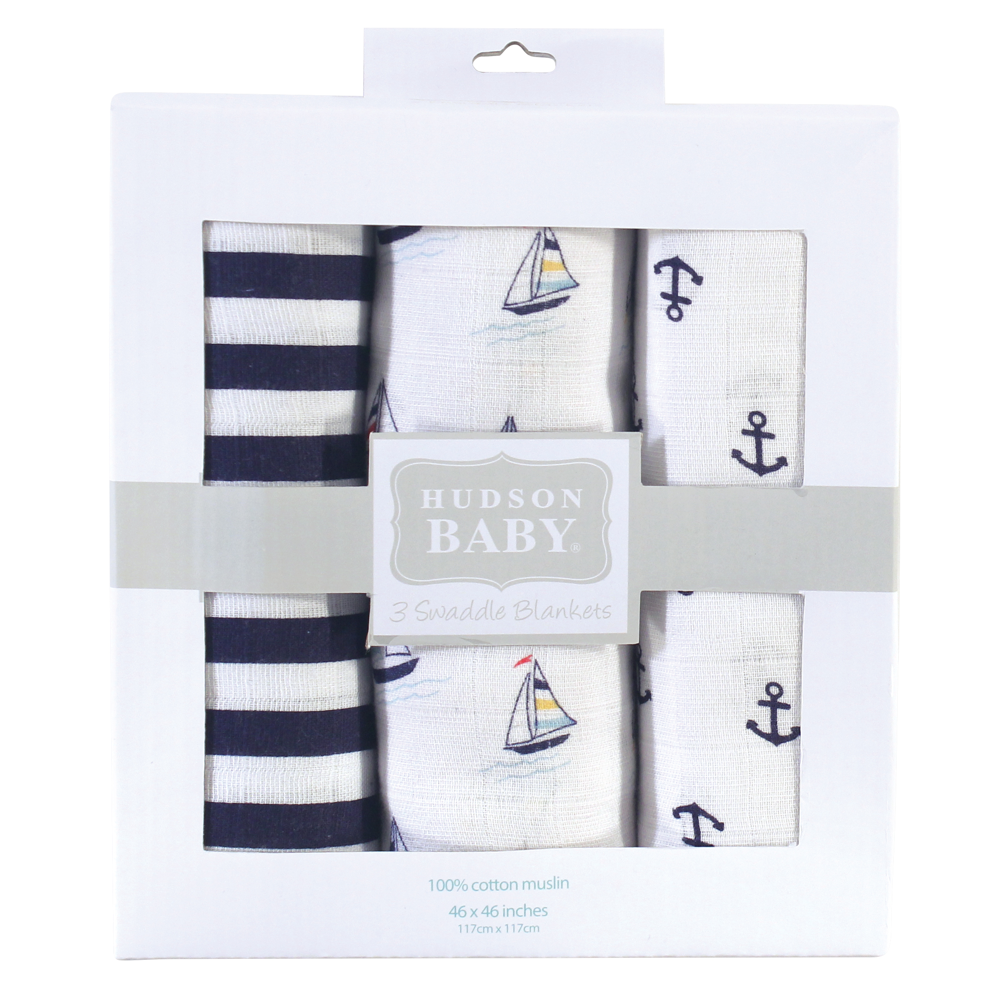 Hudson Baby Cotton Muslin Swaddle Blankets, Sailboat