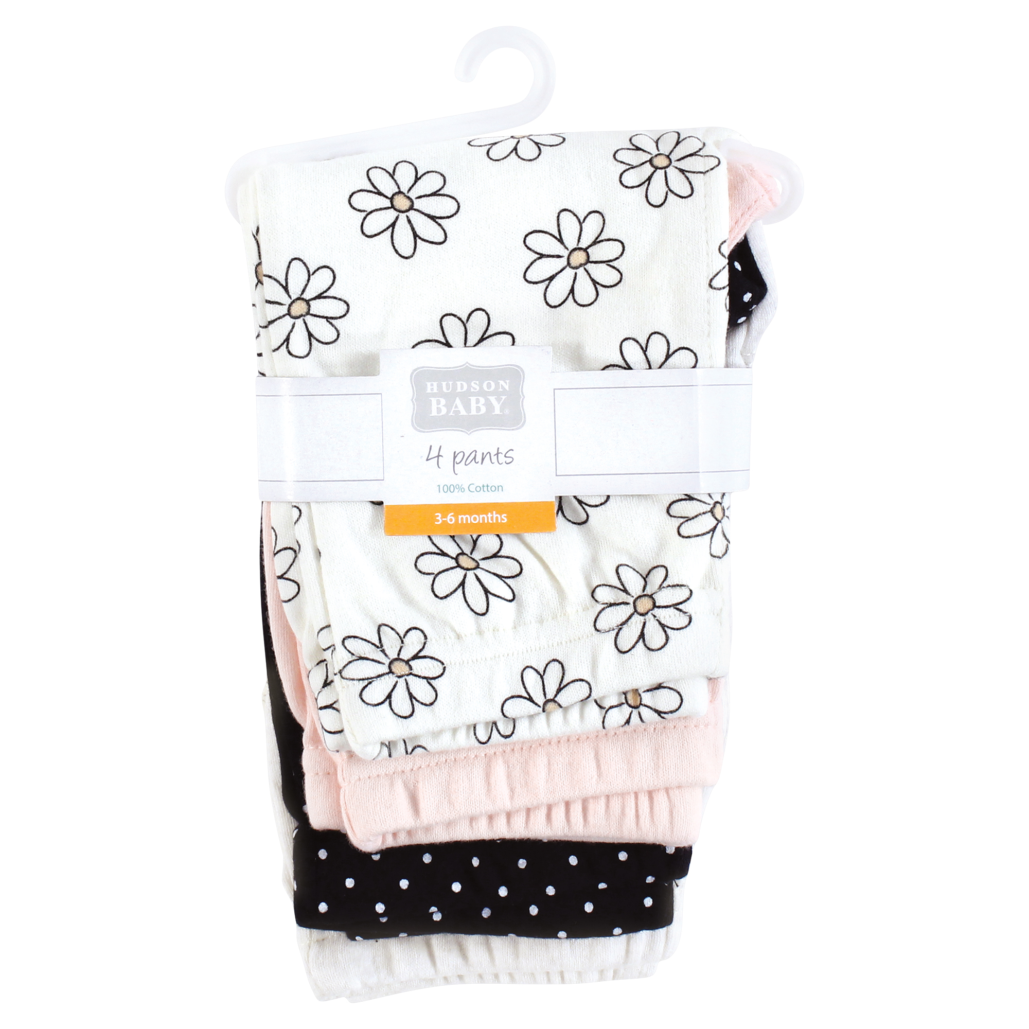Hudson Baby Unisex Baby Cotton Pants and Leggings 4-Pack, Neutral Daisy