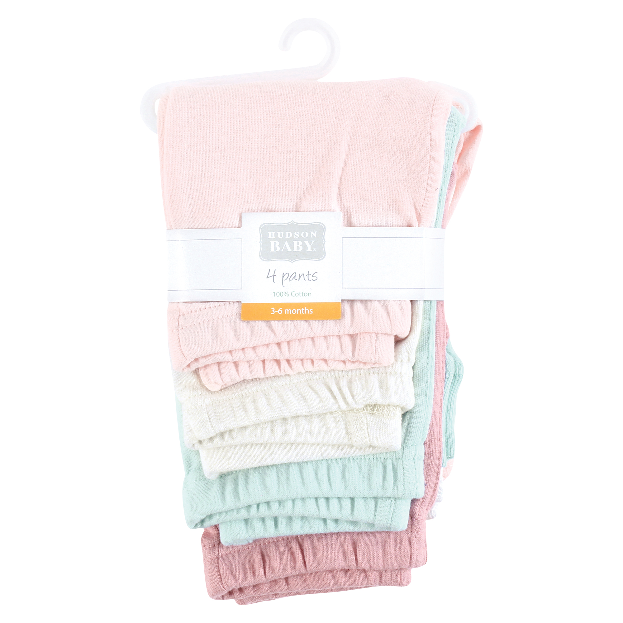 Hudson Baby Unisex Baby Cotton Pants and Leggings 4-Pack, Pink Mint