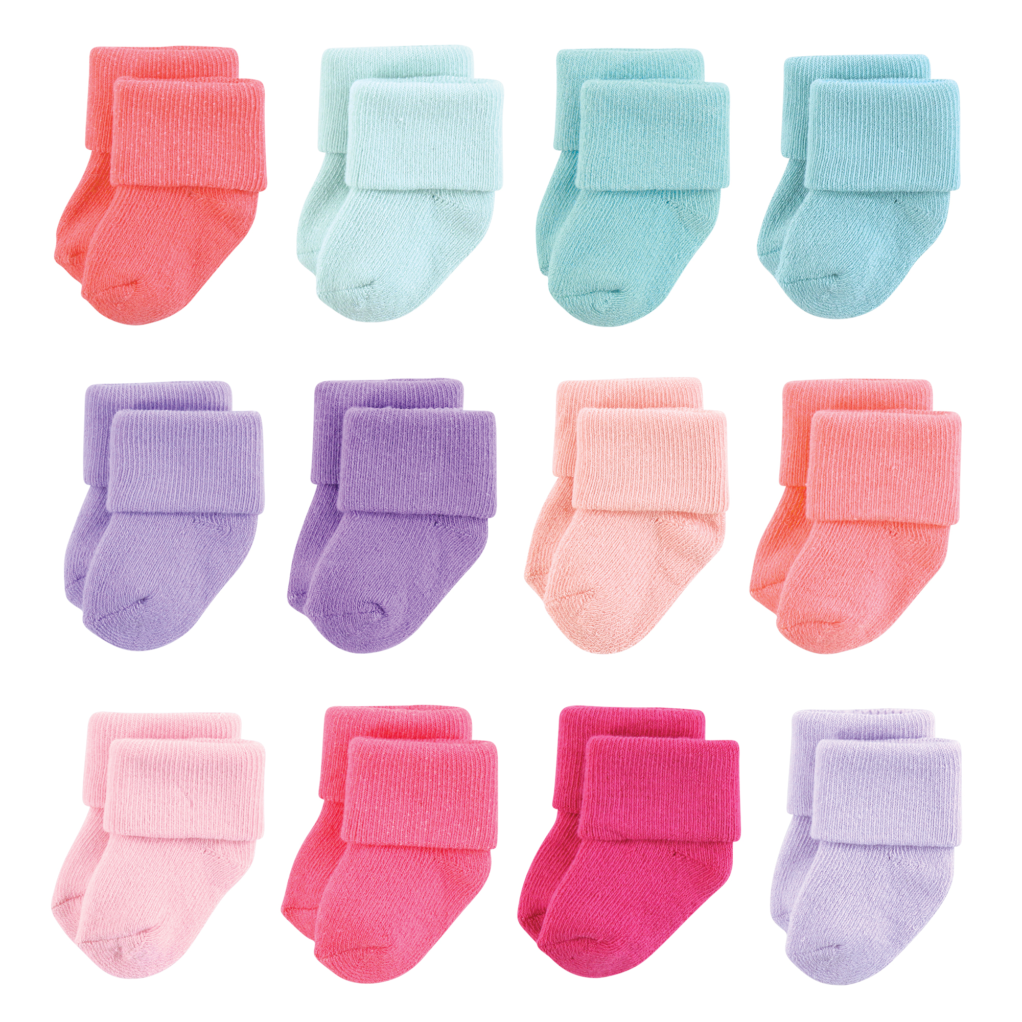 Hudson Baby Unisex Baby Cotton Rich Newborn and Terry Socks 12-Pack, Solid Pink Purple