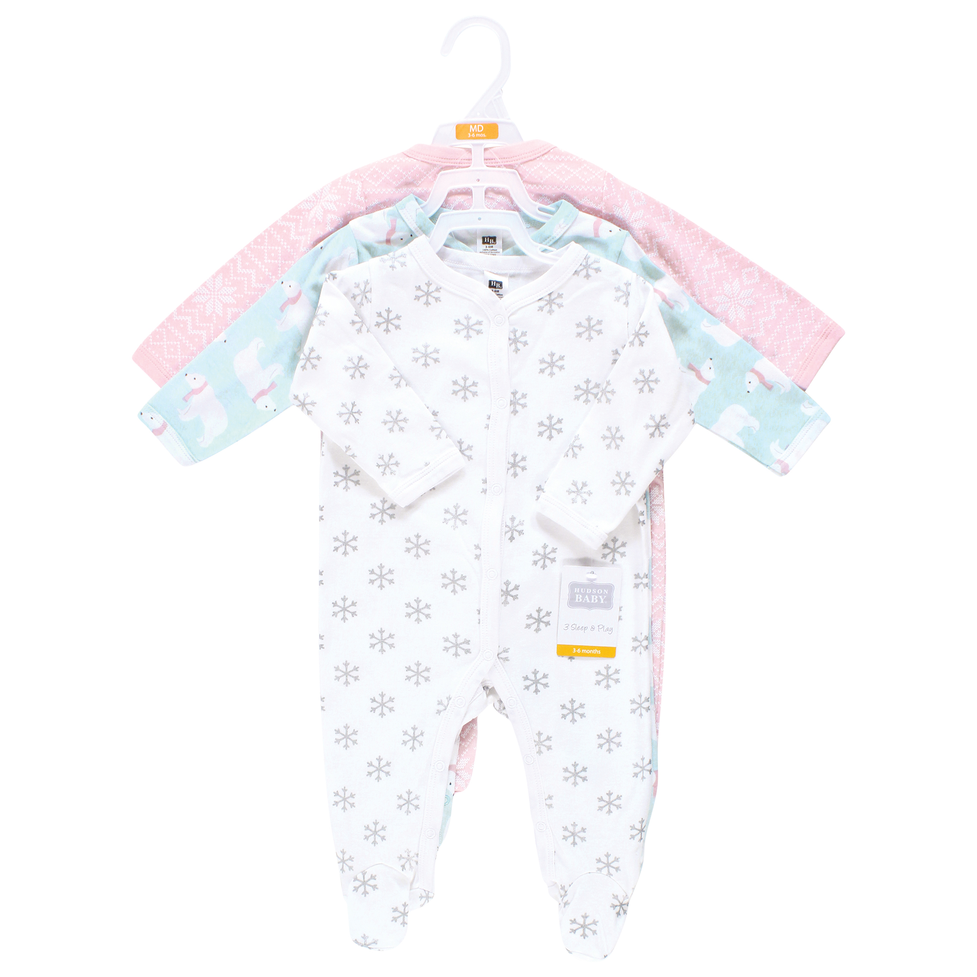 Product Description Hudson Baby sleep and play are an essential part of baby's wardrobe. Our 1-piece cotton sleep and play is great for playtime, tummy time, naps and bedtime. Our sleep and play are comfortable and cozy for all-day, everyday wear for your little one.