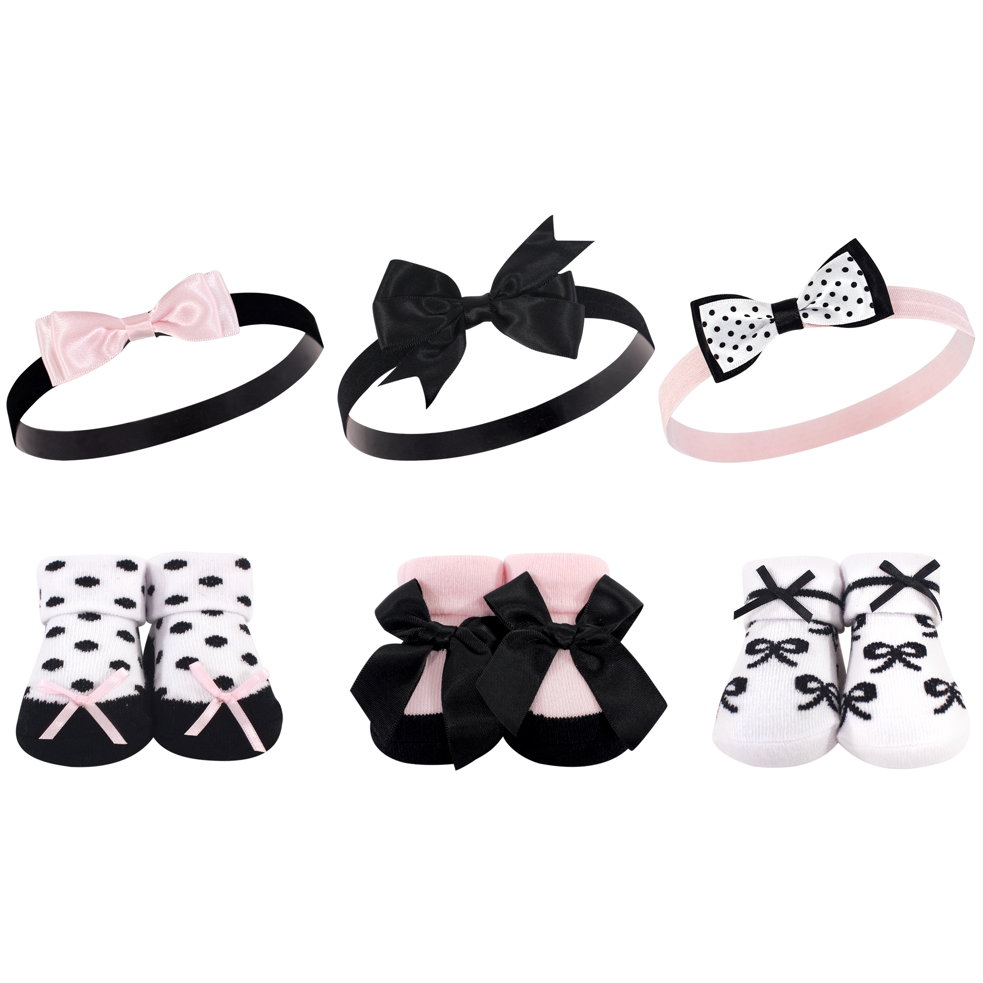 Hudson Baby Headband and Socks Giftset, Black Pink Bows