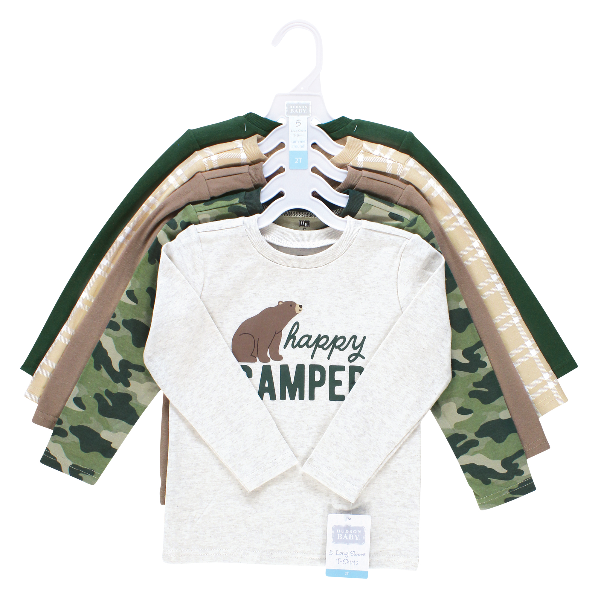 Hudson Baby Unisex Baby Long Sleeve T-Shirts 5-Pack, Happy Camper Camo